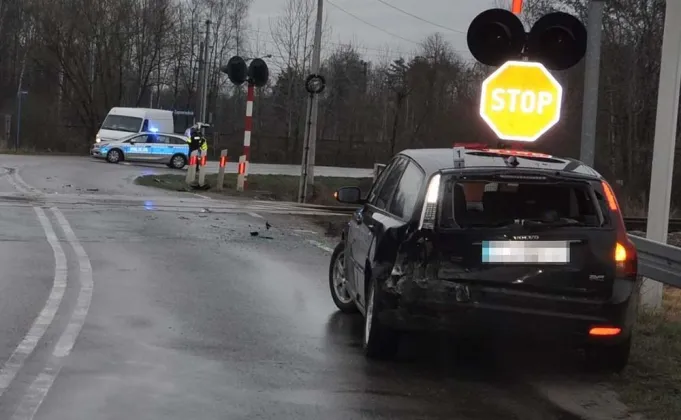 Jadący z bardzo dużą prędkością chrysler uderzył w tył znajdującego się przed przejazdem kolejowym volvo. Odbił się od volvo i wpadł na rogatki przejazdu kolejowego. Na koniec spadł do pobliskiego rowu. Mundurowi widzieli, że kierujący wyskoczył z vana i poprzez pobliskie zarośla oraz posesje uciekł do lasu.