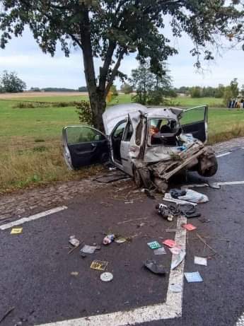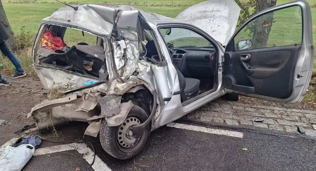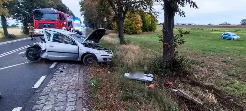 Doszło do niego około godziny 17-stej. Kierujący Oplem nie dostosował prędkości do warunków panujących na drodze, zjechał z jezdni, a następnie auto uderzyło w drzewo. To cud, że tyłem, a nie czołowo przodem. Mężczyzna z ciężkimi obrażeniami ciała trafił do szpitala.