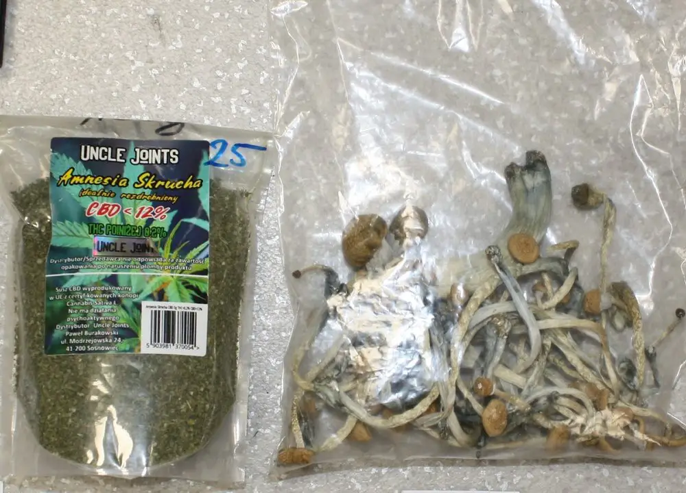 Oprócz suszu grzybów, które mężczyzna trzymał w lodówce, podsiadał on również pojemnik z grzybnią, z której wyrastały kolejne.