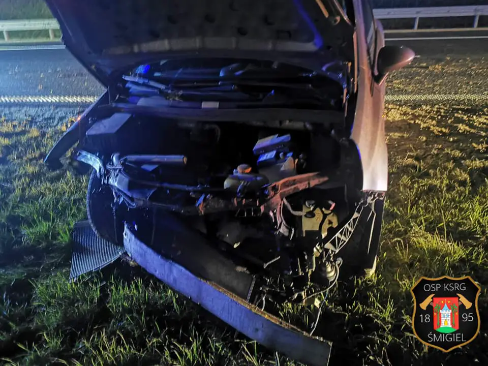 Według zgłoszenia, do wypadku miało dojść na 26 kilometrze drogi ekspresowej S5 w kierunku Poznania. Na miejsce natychmiast zadysponowano dwa zastępy strażaków zawodowych z Jednostki Ratowniczo-Gaśniczej z Kościana, dwa zastępy strażaków ochotników ze Śmigla, Zespół Ratownictwa Medycznego, policję, motoambulas (Fundacja Ratownictwo Motocyklowe Polska) oraz Służbę Drogową S5.
