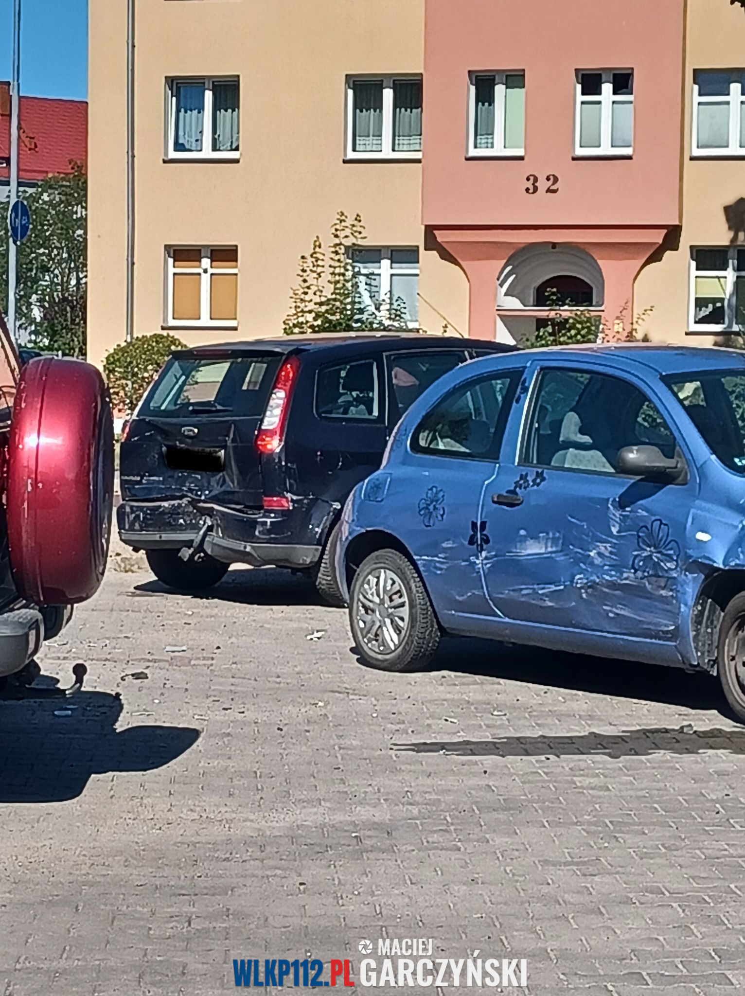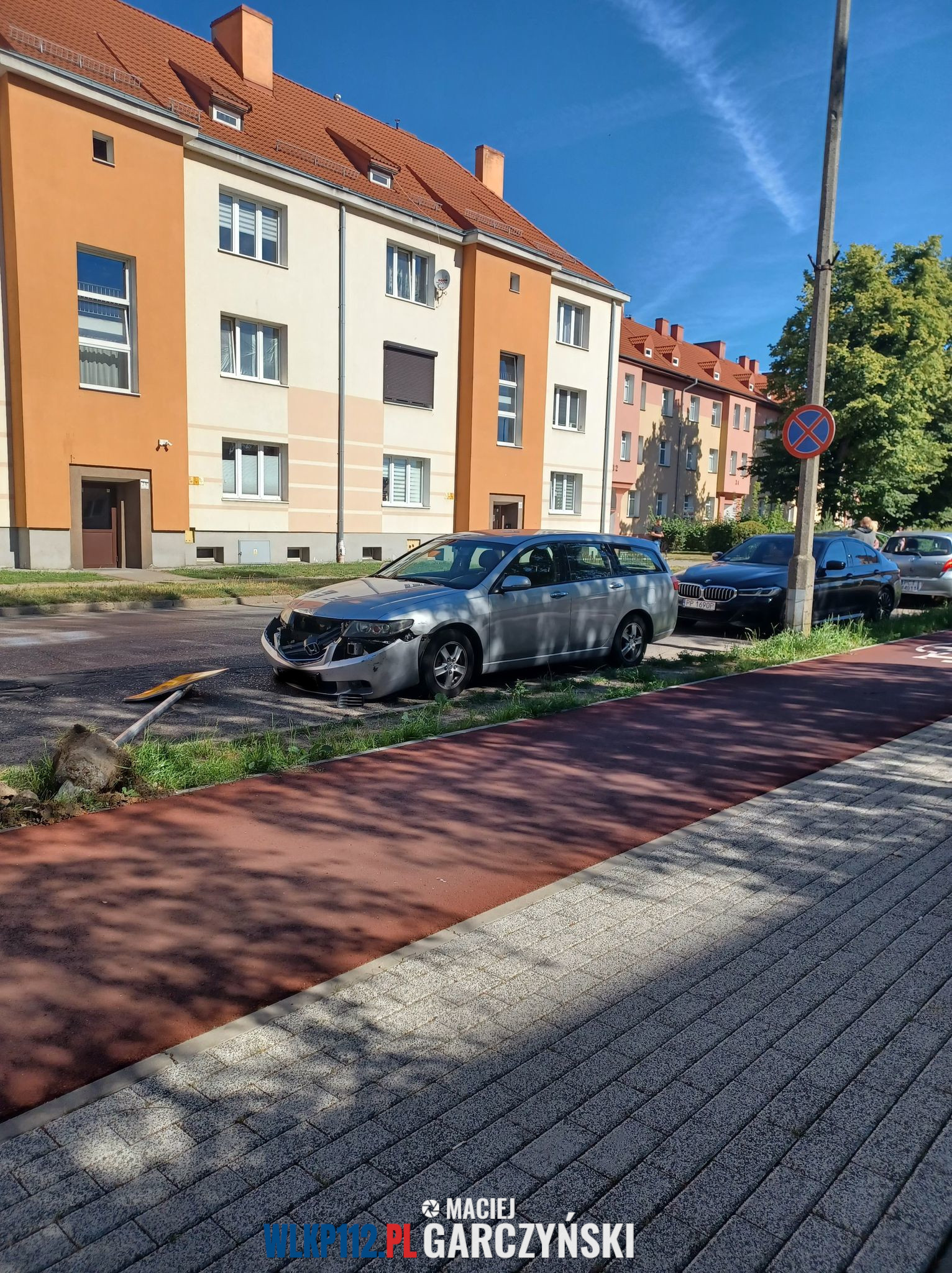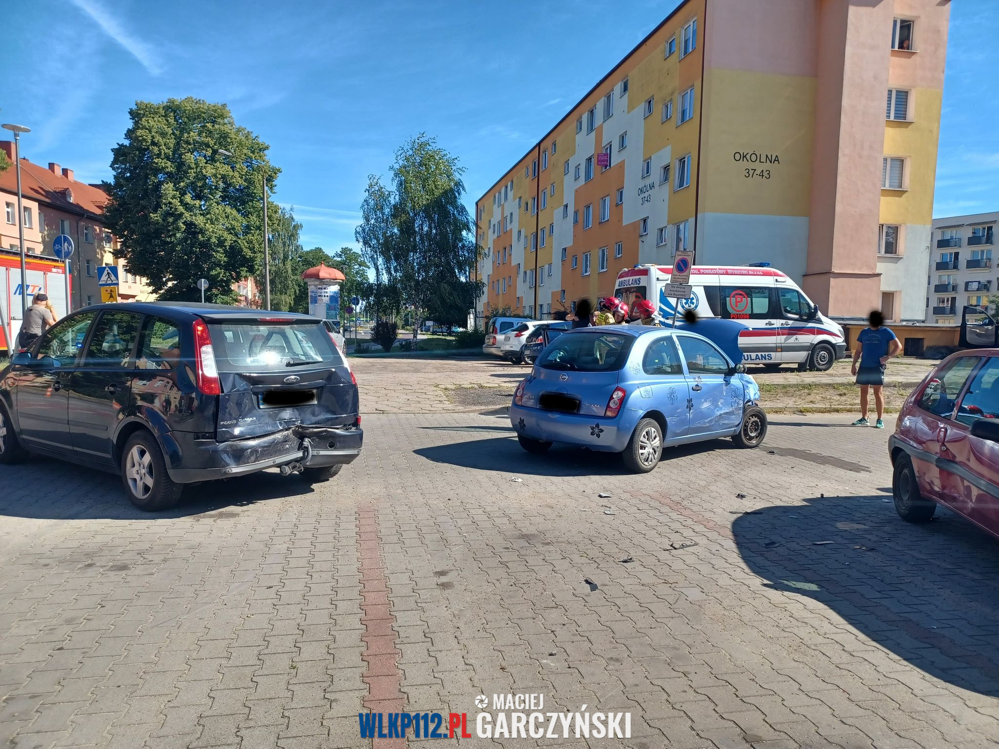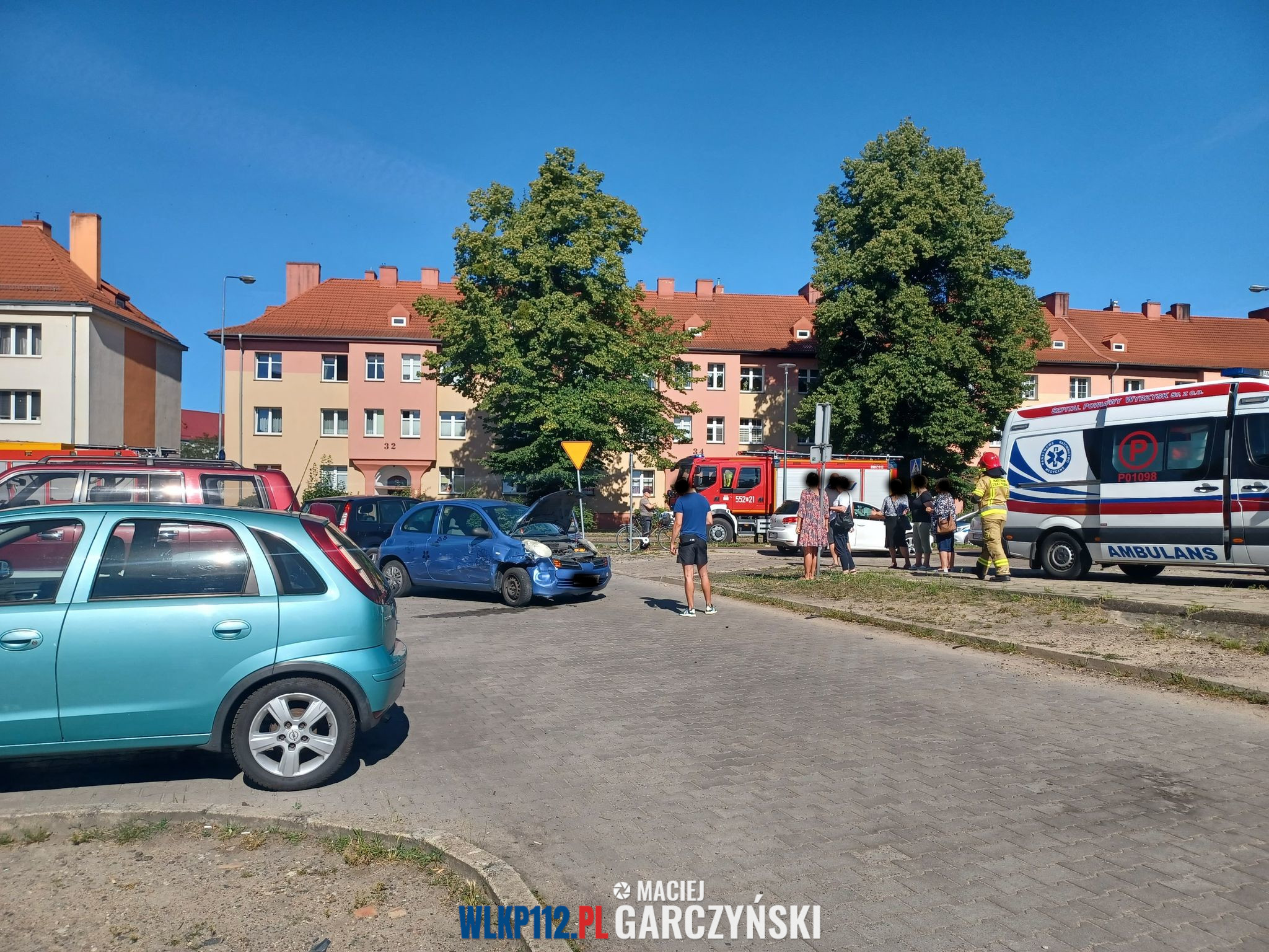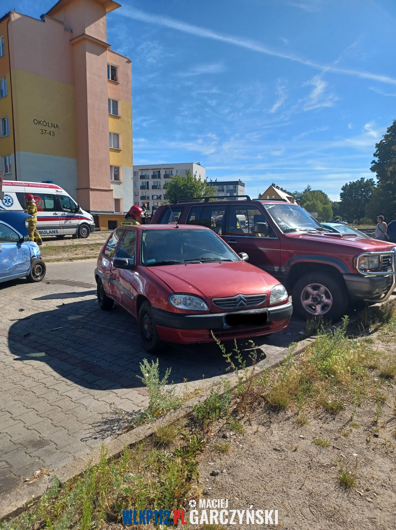 Po przybyciu na miejsce straży pożarnej ustalono, że kierujący pojazdem zjechał z drogi uszkadzając znak drogowy oraz 5 zaparkowanych samochodów osobowych. Na miejscu obecny był zespół ratownictwa medycznego, który udzielał pomocy medycznej poszkodowanemu.