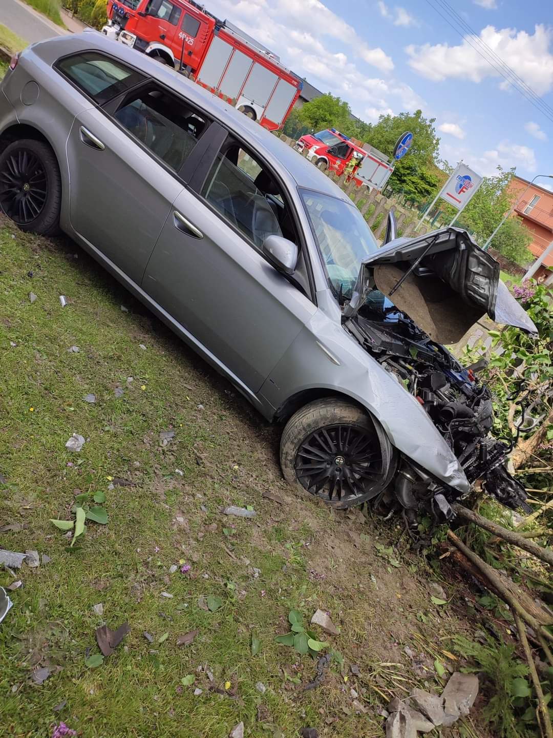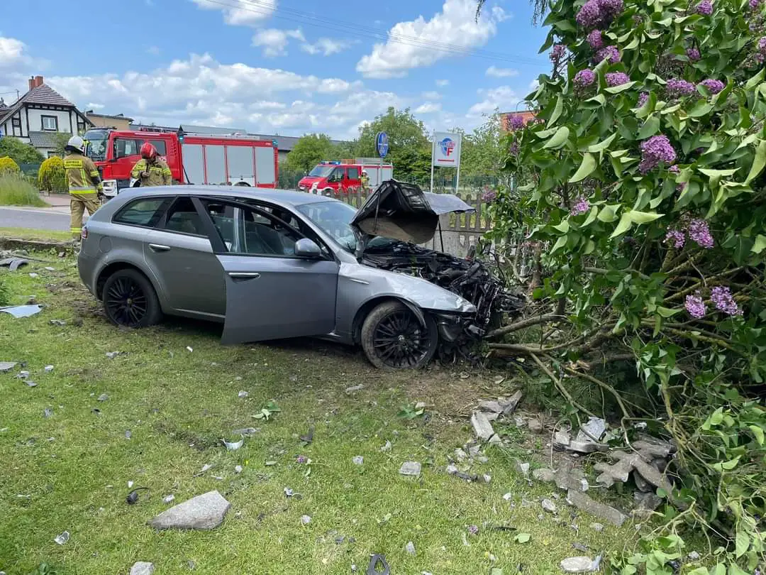 Po dojeździe na miejsce okazało się, że samochód osobowy marki Alfa Romeo uderzył w ogrodzenie posesji oraz, że kierowca nie potrzebuje pomocy medycznej.