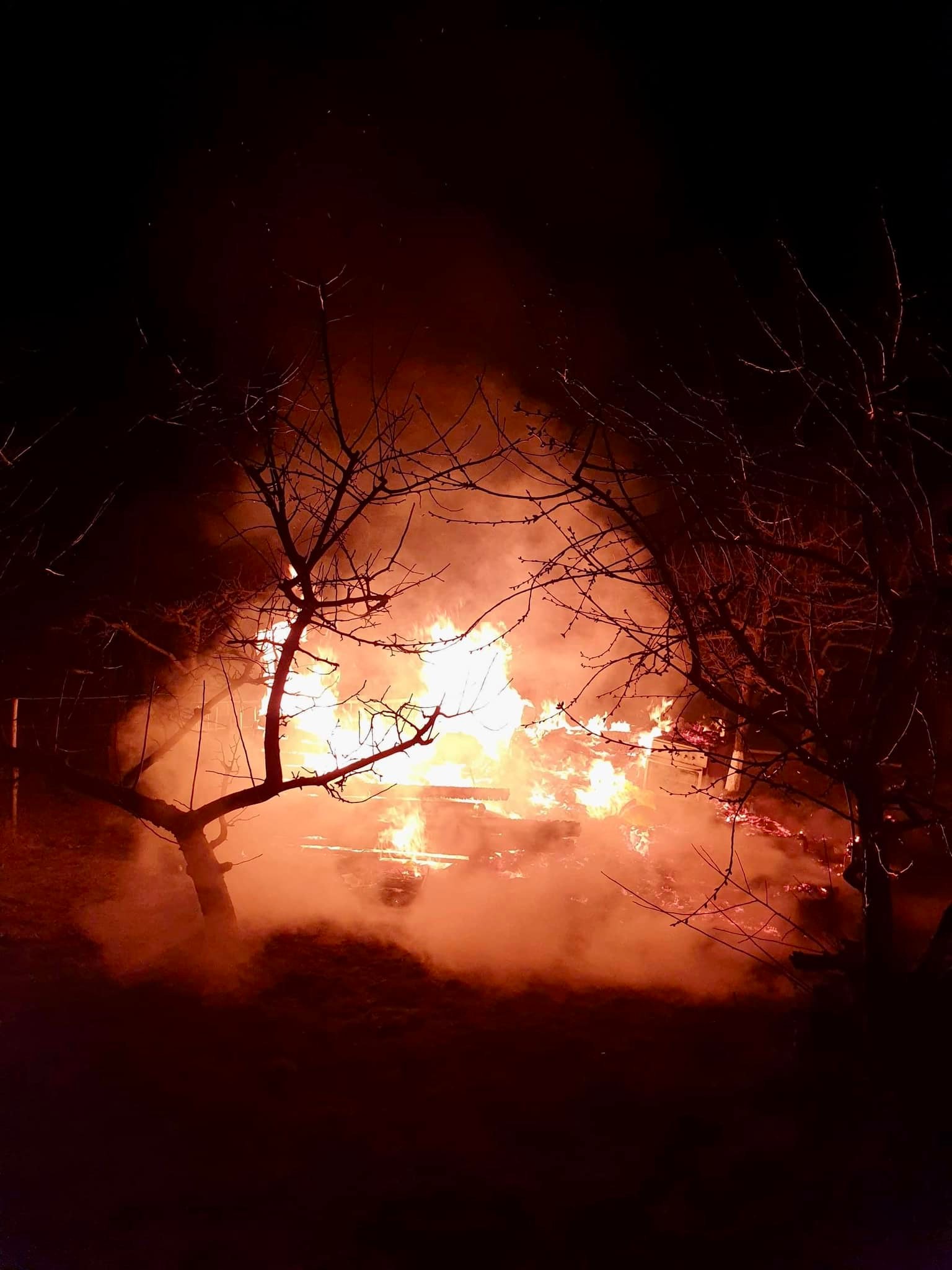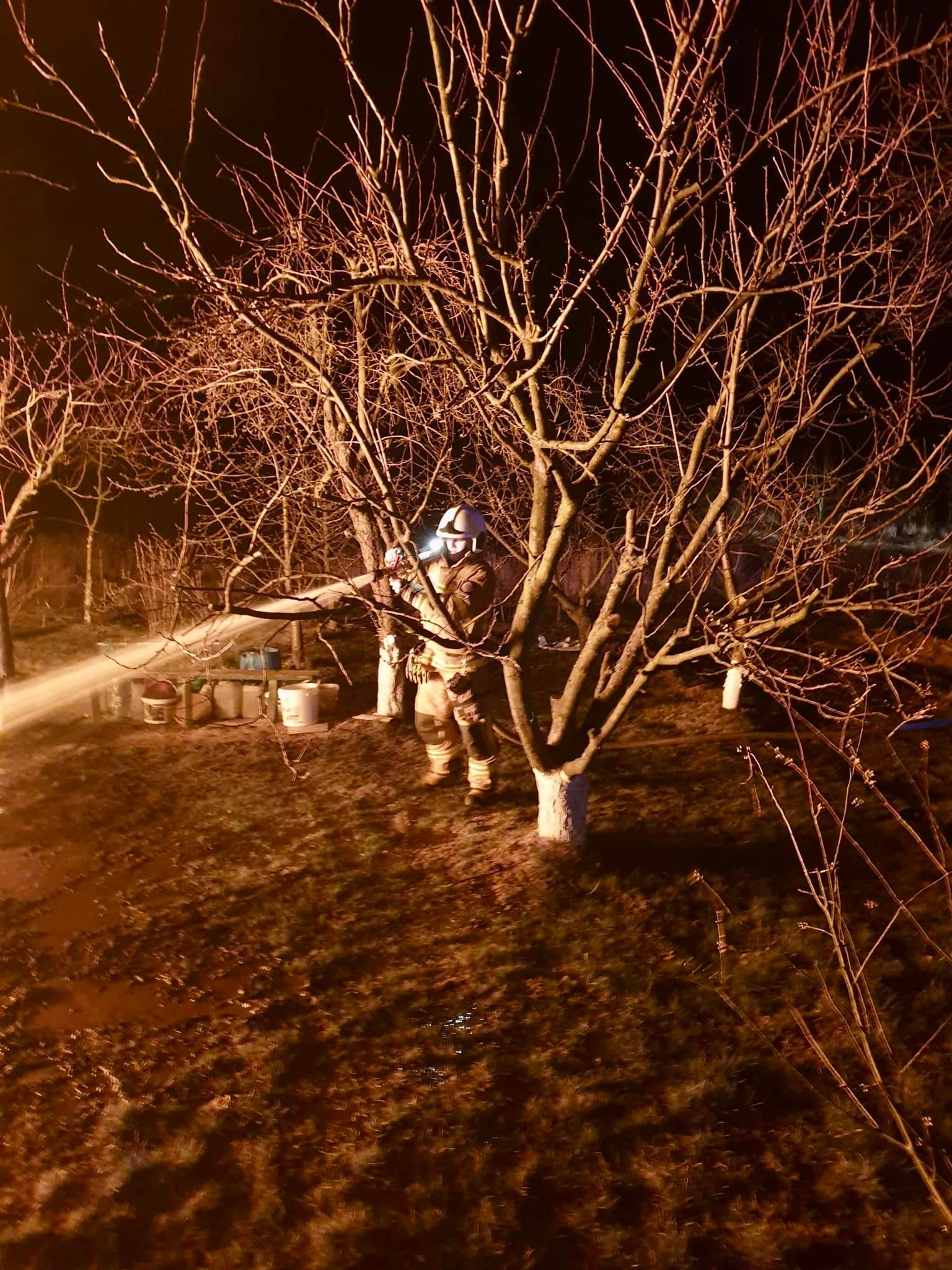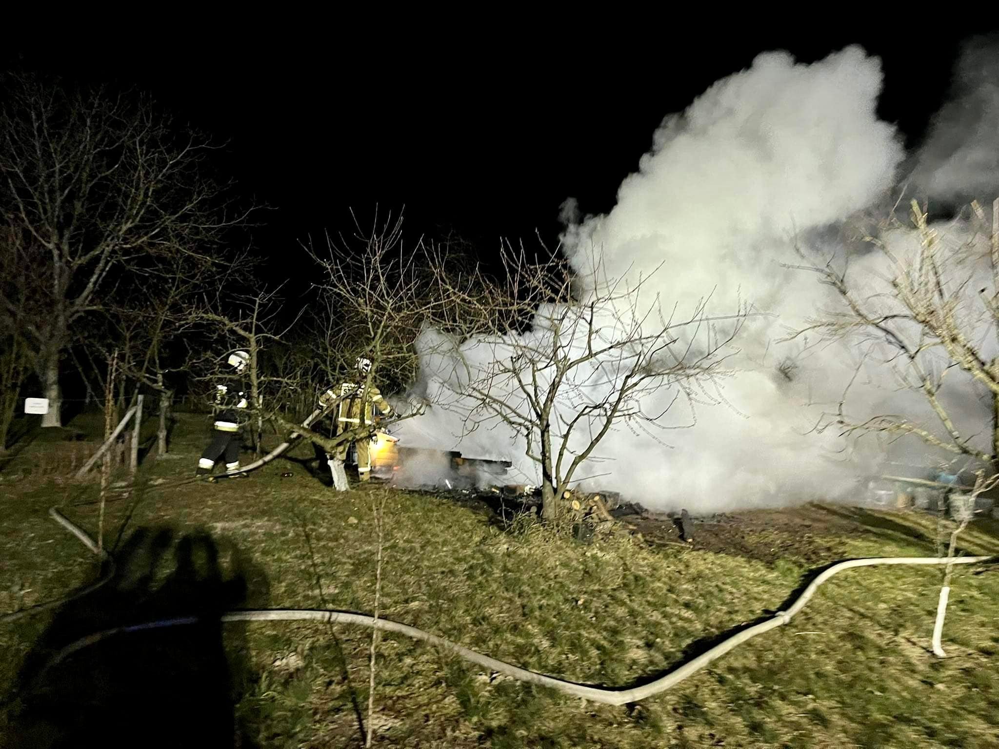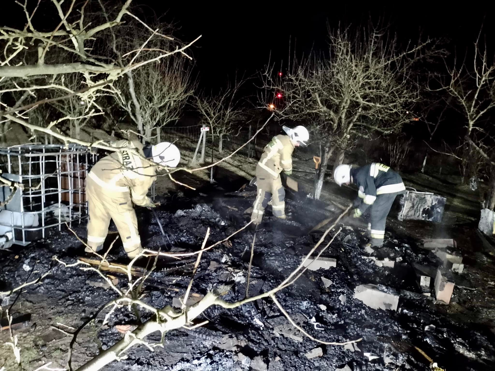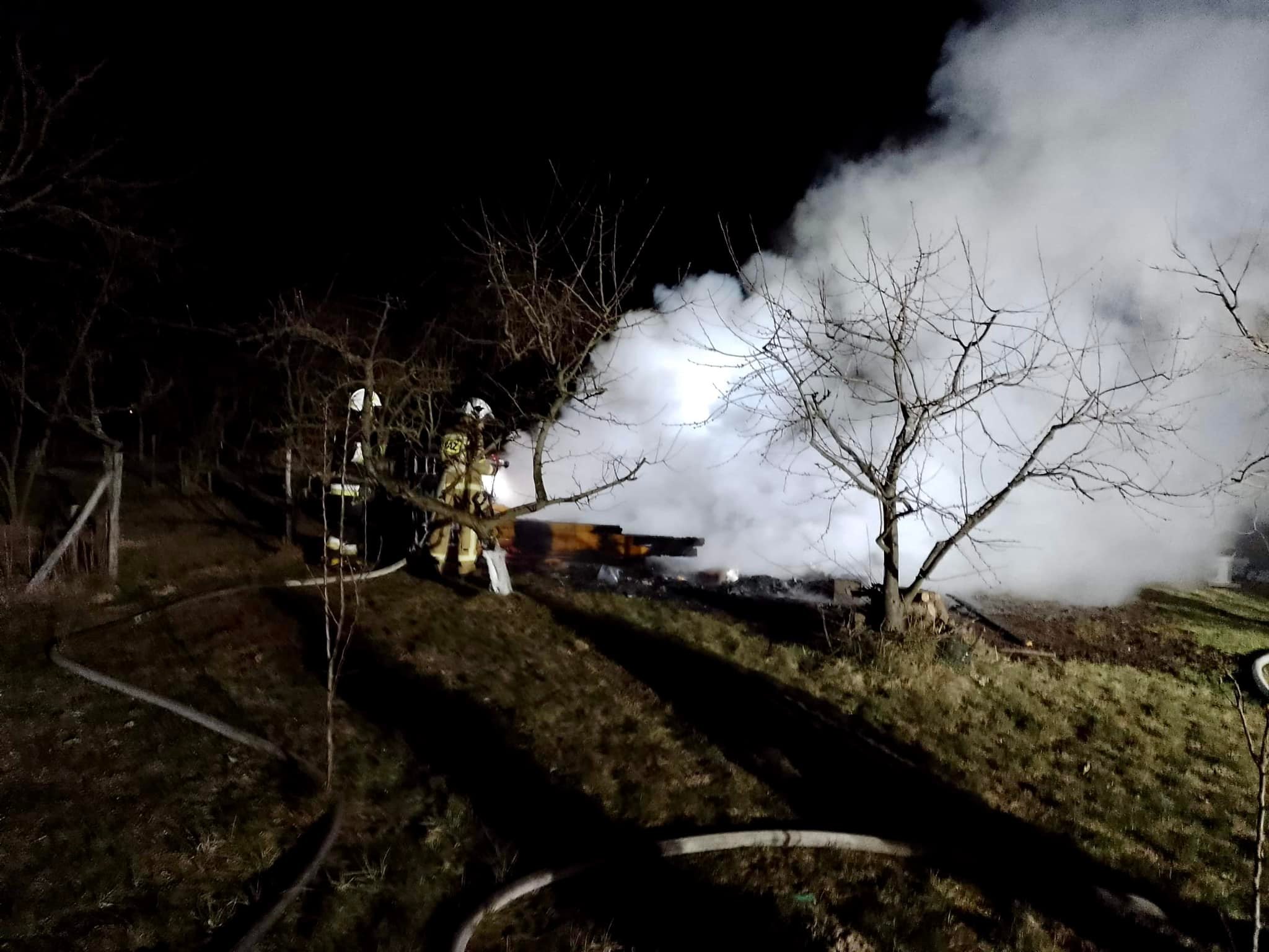 Po dotarciu we wskazane miejsce druhowie zastali rozwinięty pożar altany działkowej. Cały obiekt był w ogniu. Działania strażaków polegały na ugaszeniu ognia przy pomocy prądów wody w natarciu, po czym przelano wszystkie elementy altany celem wykluczenia powstania zarzewi ognia. Na końcu miejsce pożaru zostało przeszukane czy nikt nie znajdował się w środku.