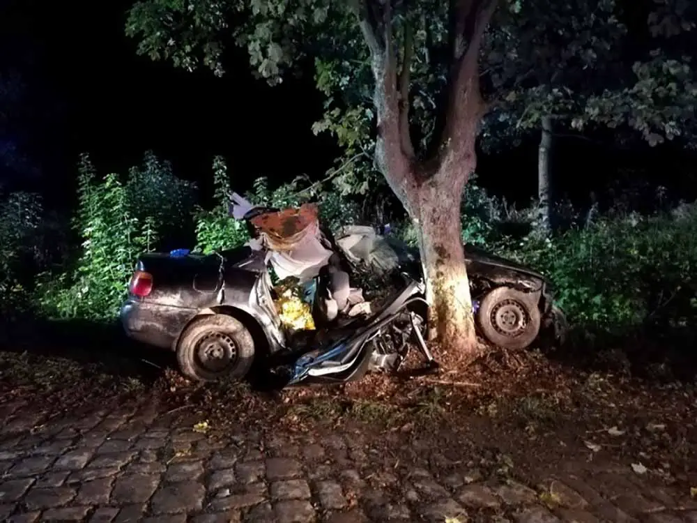 20-letni kierujący audi z niewyjaśnionych jeszcze przyczyn wpadł w poślizg. Samochód z dużą prędkością uderzył bokiem w drzewo. Siła uderzenia była ogromna. Drzewo wbiło się do środka audi. Na miejsce szybko dotarły służby ratunkowe. W audi było pięć osób w wieku od 20 do 13 lat.