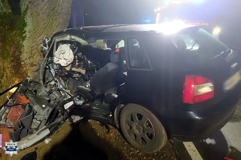 Jak wynika z ustaleń policjantów, pracujących na miejscu wypadku, 32-letni mieszkaniec Mławy, jadąc audi w kierunku Ciechanowa, z nieznanych przyczyn, zjechał na przeciwległy pas ruchu i uderzył w drzewo.