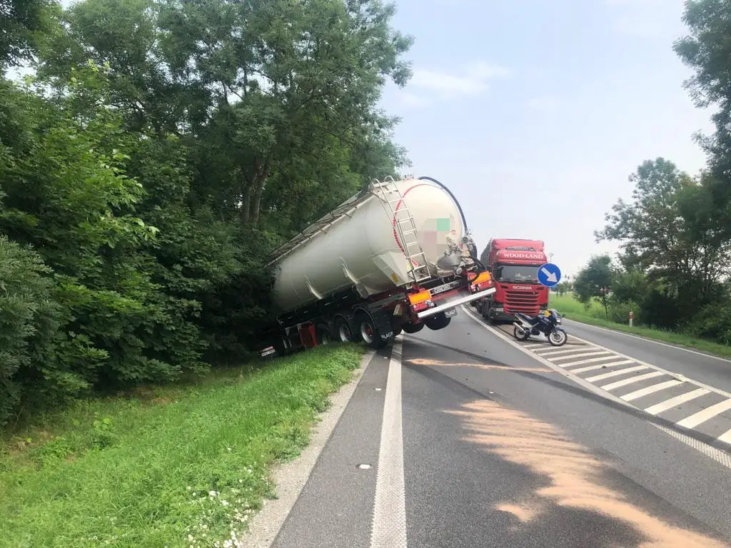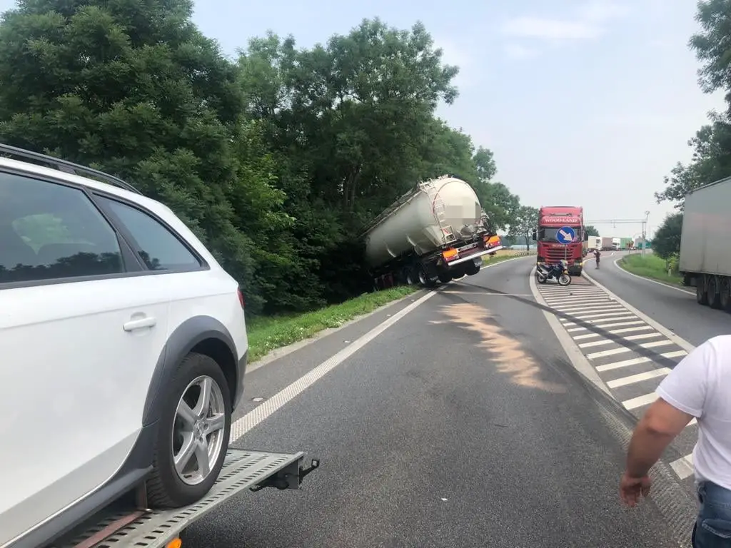 W celu stabilizacji przechylonego ciągnika siodłowego i cysterny do przewozu mączki upuszczono powietrze z poduszek amortyzacyjnych naczepy. Przybyły na miejsce lekarz LPR po przeprowadzonym badania podjął decyzję o przewiezieniu dwóch osób karetką do szpitala w Nowym Tomyślu – dodaje Żukrowski