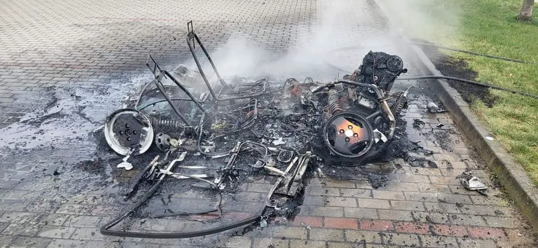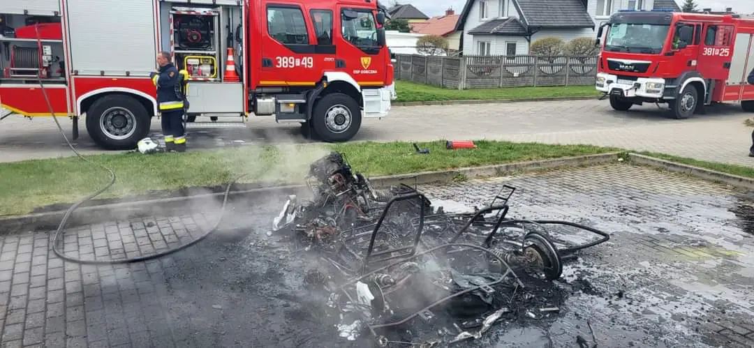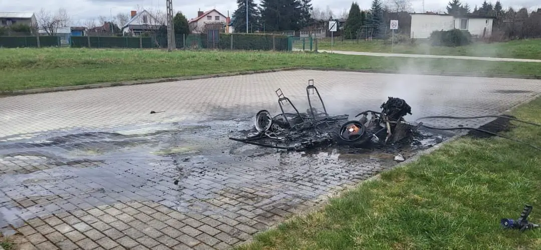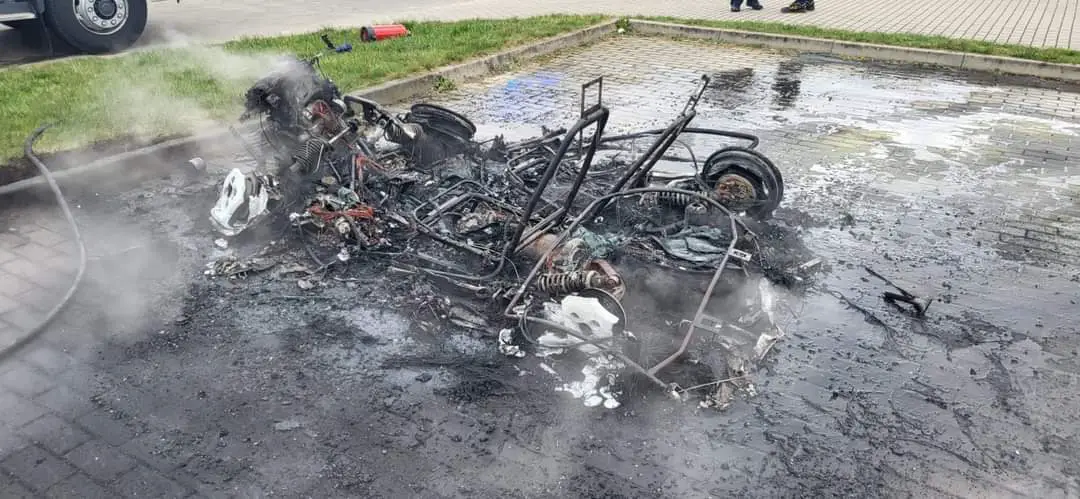 Zgłoszenie o pożarze małego samochodu, którym można kierować na prawo jazdy kategorii B1 spalił się całkowicie. Wiadomo, że spalone auto było marki Liger Nova.