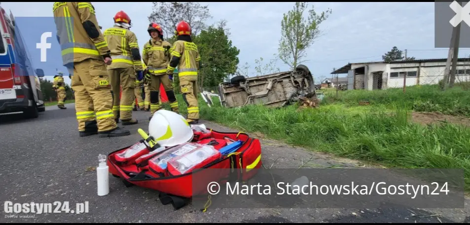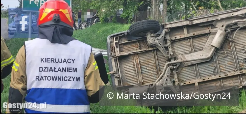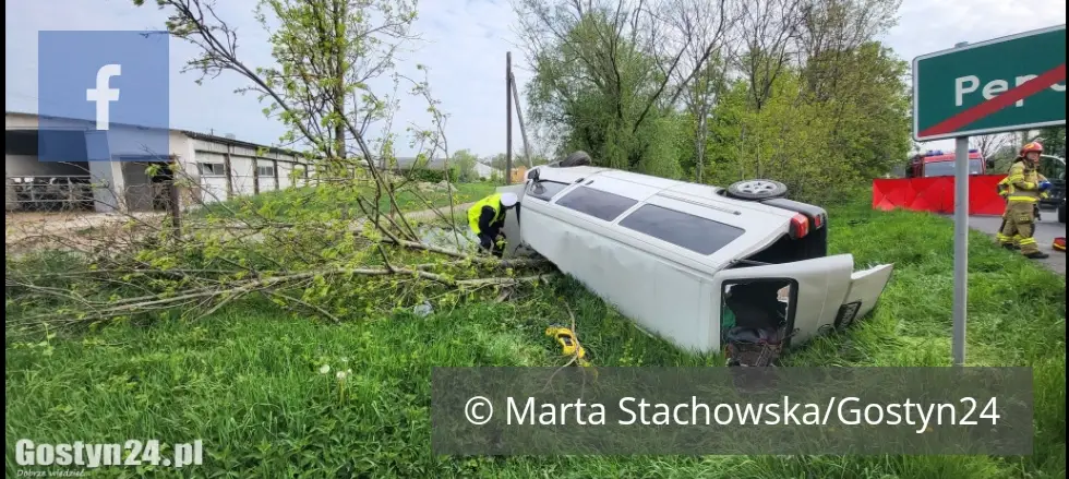 - Doszło do wypadnięcia samochodu marki volkswagen transporter do rowu, samochód dachował. Podróżowały nim dwie osoby, które opuściły ten pojazd samodzielnie. Po przybyciu na miejsce zastępów straży pożarnej strażacy udzielili kwalifikowanej pierwszej pomocy poszkodowanym – wsparciu psychicznym i zatamowaniu krwotoku. Byli przytomni, a następnie przekazani zostali zespołom ratownictwa medycznego – mówił asp. sztab. Marek Maśliński, dowódca KP PSP Gostyń