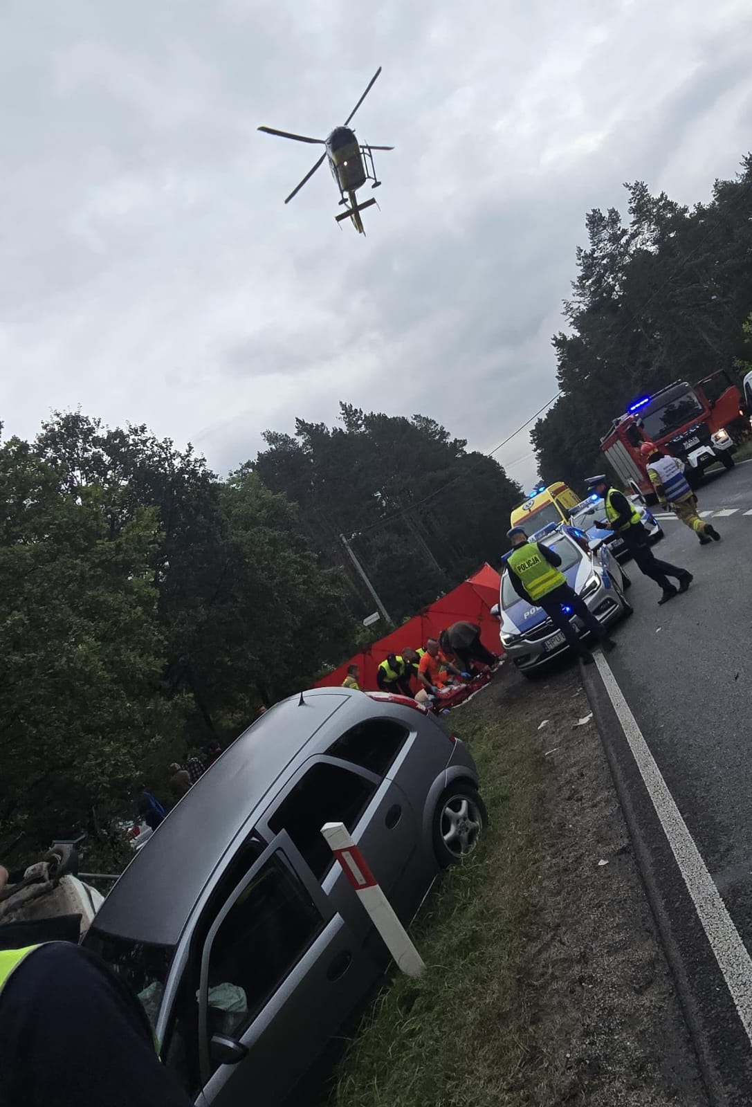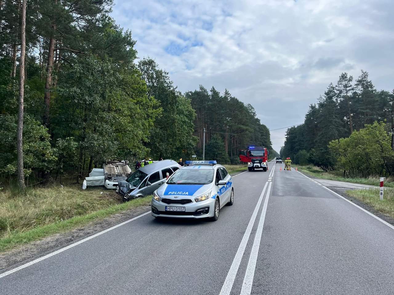 Wszystko wydarzyło się około godziny 13:30 na drodze krajowej numer 11 w miejscowości Ostrzeszów. Na miejsce natychmiast zadysponowano wozy strażackie, policję oraz zespół ratownictwa medycznego. Wylądował również śmigłowiec Lotniczego Pogotowia Ratunkowego.