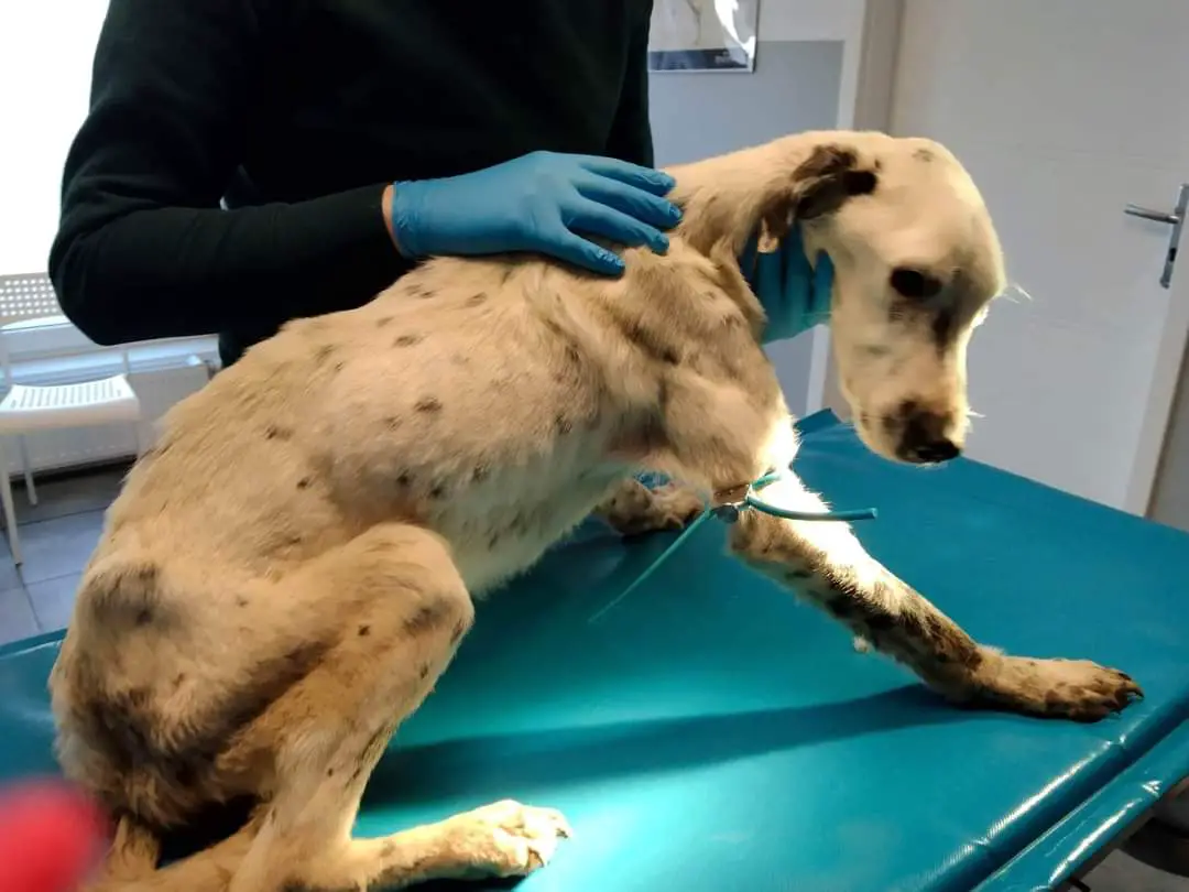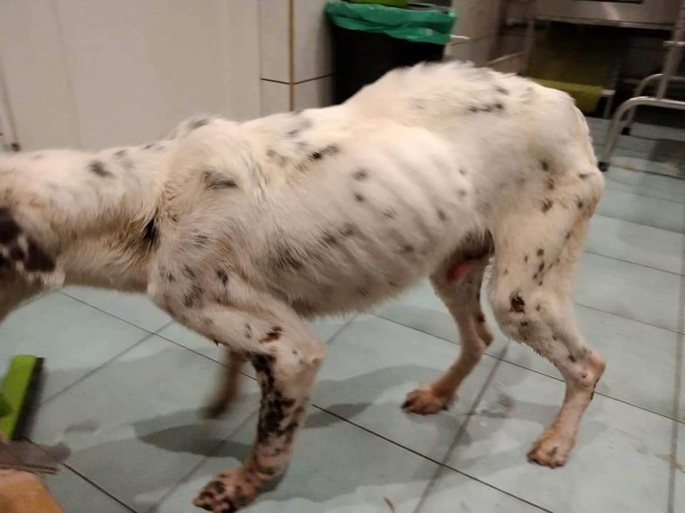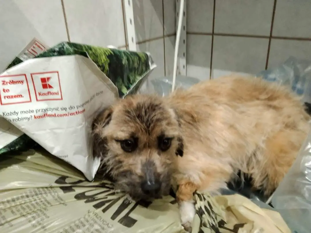 Na miejsce natychmiast w trybie pilnym udała się jedna z wolontariuszek kaliskiego stowarzyszenia. Gdy dotarła na miejsce przeżyła szok. Zobaczyła wygłodzonego i wycieńczonego psa.