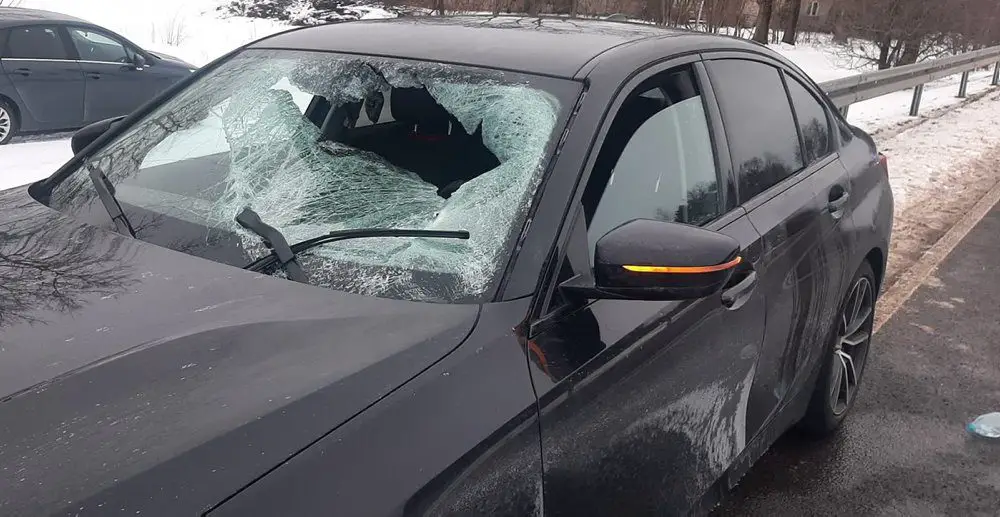 Do niebezpiecznego zdarzenia doszło przed kilkoma dniami w Parysowie. Na miejscu policjanci ustalili, że z dachu naczepy jadącej ciężarowej scanii padła tafla lodu. Uderzyła w jadące z naprzeciwka BMW. Bryła lodu przebiła szybę czołową osobówki.