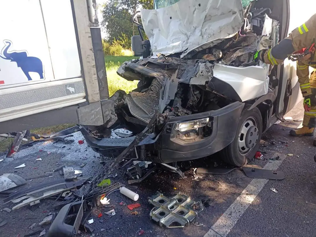 Do bardzo groźnego wypadku doszło w powiecie grodziskim. Bus wbił się w tył ciężarówki.