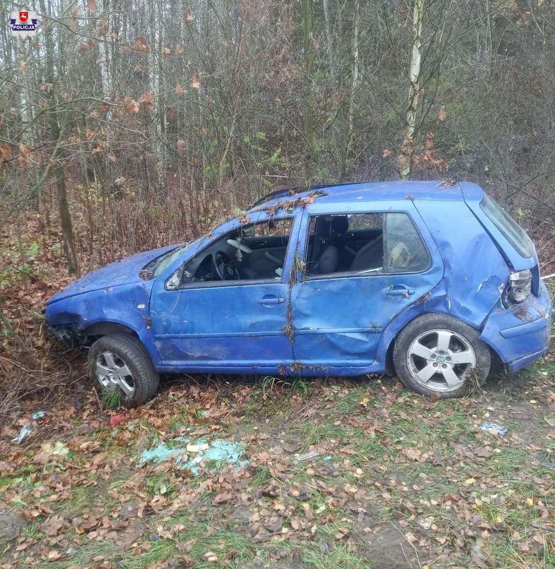 Do tego zdarzenia doszło po godzinie 10.30 w ubiegły piątek. Policjanci z Komisariatu Policji w Kocku podczas patrolu rejonu służbowego w jednej z miejscowości, postanowili zatrzymać do kontroli drogowej Volkswagena Golfa. Auto nie trzymało prostego toru jazdy. Po włączeniu sygnałów świetlnych i dźwiękowych kierowca golfa zamiast zwolnić i się zatrzymać, podjął ucieczkę. Policjanci ruszyli za samochodem. Po przejechaniu krótkiego odcinka drogi kierujący golfem na łuku drogi stracił panowanie nad autem, wjechał do przyrożnego rowu i dachował. Kierowca i pasażer golfa podjęli ucieczkę pieszo z samochodu, jednak zostali szybko zatrzymani przez policjantów. Po zbadaniu stanu trzeźwości, okazało się, że 30-letni kierujący miał ponad pół promila alkoholu w organizmie. Ponadto podczas sprawdzania w policyjnych bazach danych okazało się, że nie ma uprawnień do kierowania pojazdami. Kierowca przyznał, że uciekał bo był pijany. W trakcie dalszych czynności podczas przeszukania 38-letniego pasażera samochodu, w przedniej kieszeni bluzy policjanci znaleźli woreczek strunowy z proszkiem koloru białego. Po badaniu testerem okazało się, że jest to amfetamina. Substancja została zabezpieczona.