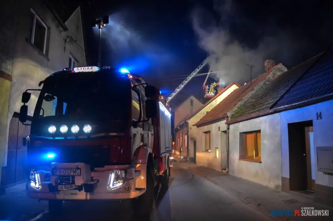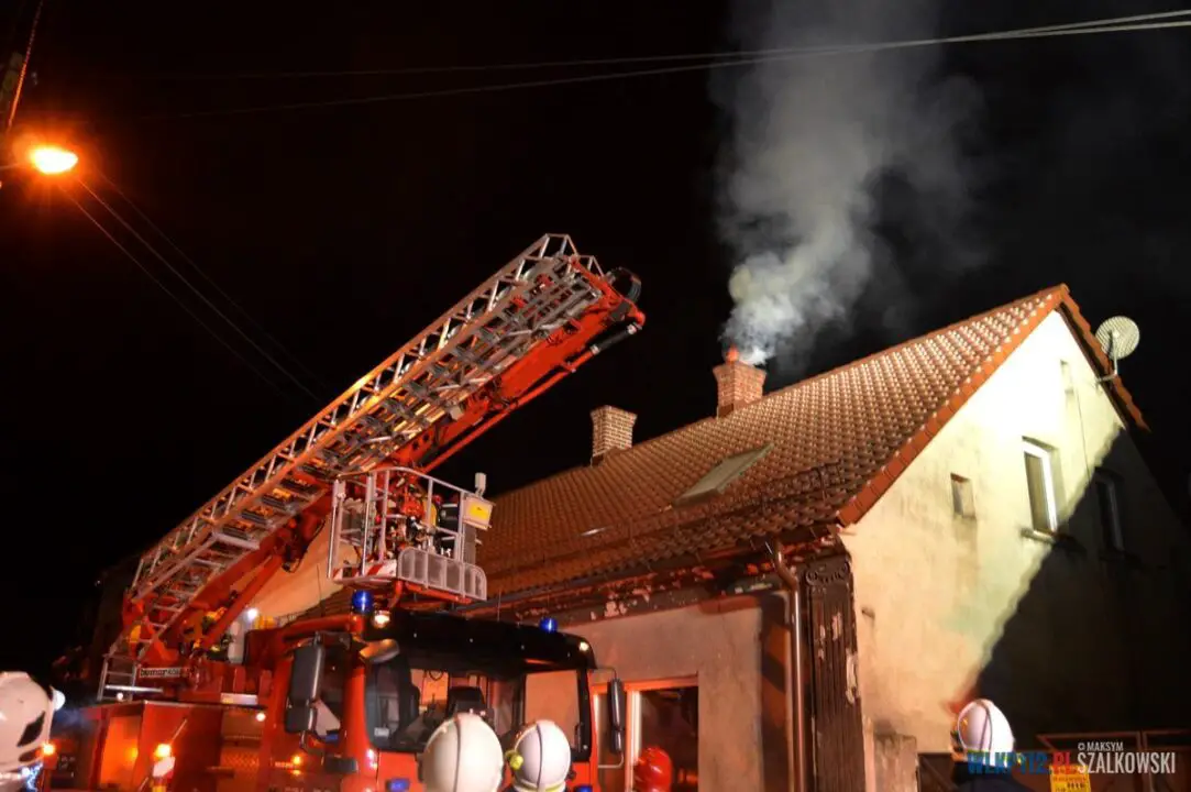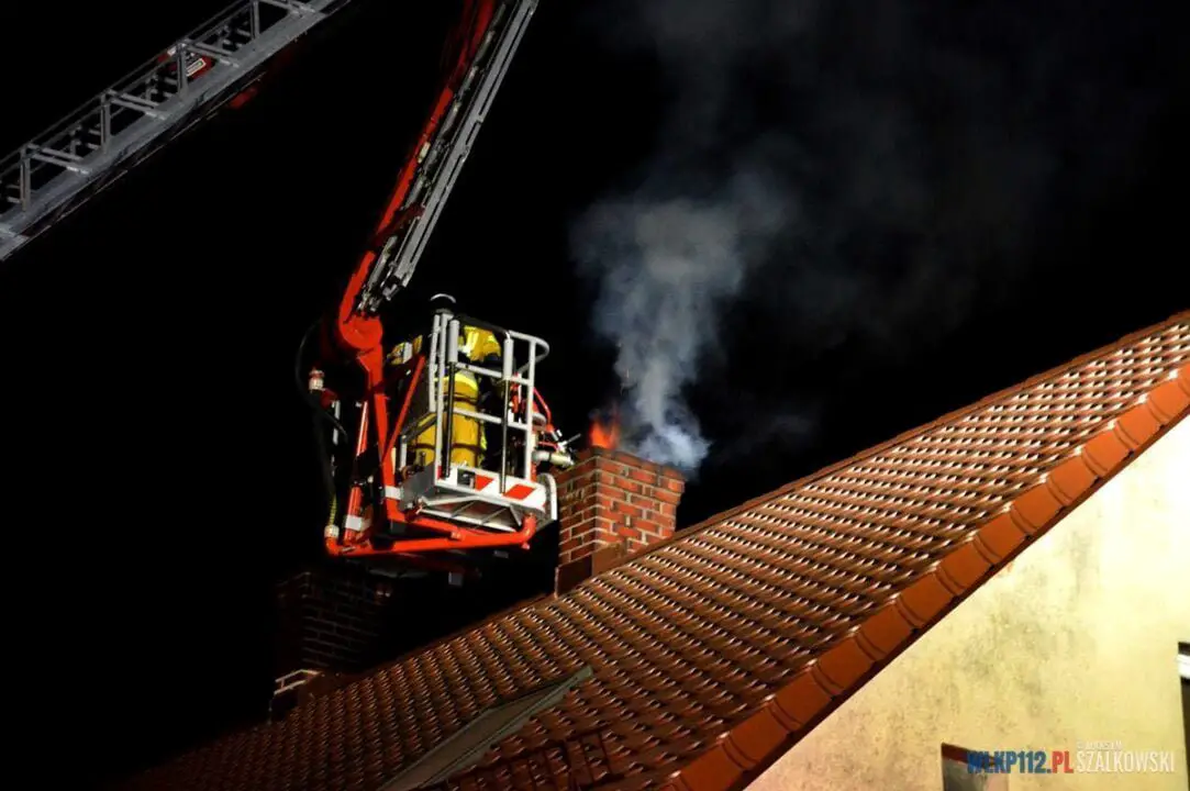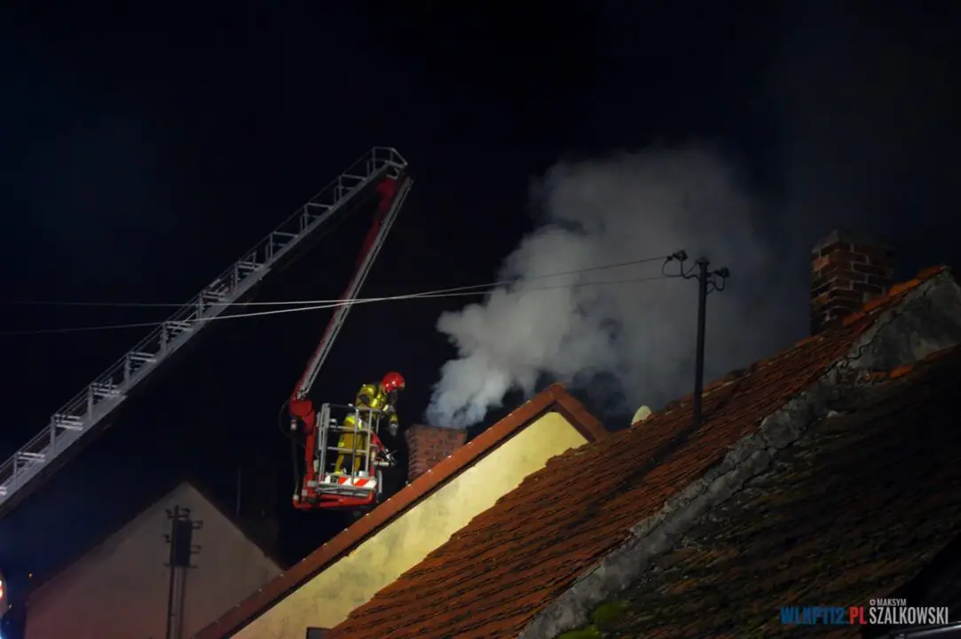 Strażacy po przybyciu na miejsce zdarzenia, zabezpieczyli teren działania i rozstawili podnośnik, a następnie przystąpili do działań gaśniczych. Pożar przed przyjazdem straży był już bardzo rozwinięty co było można zobaczyć po buchającym dymie z komina.