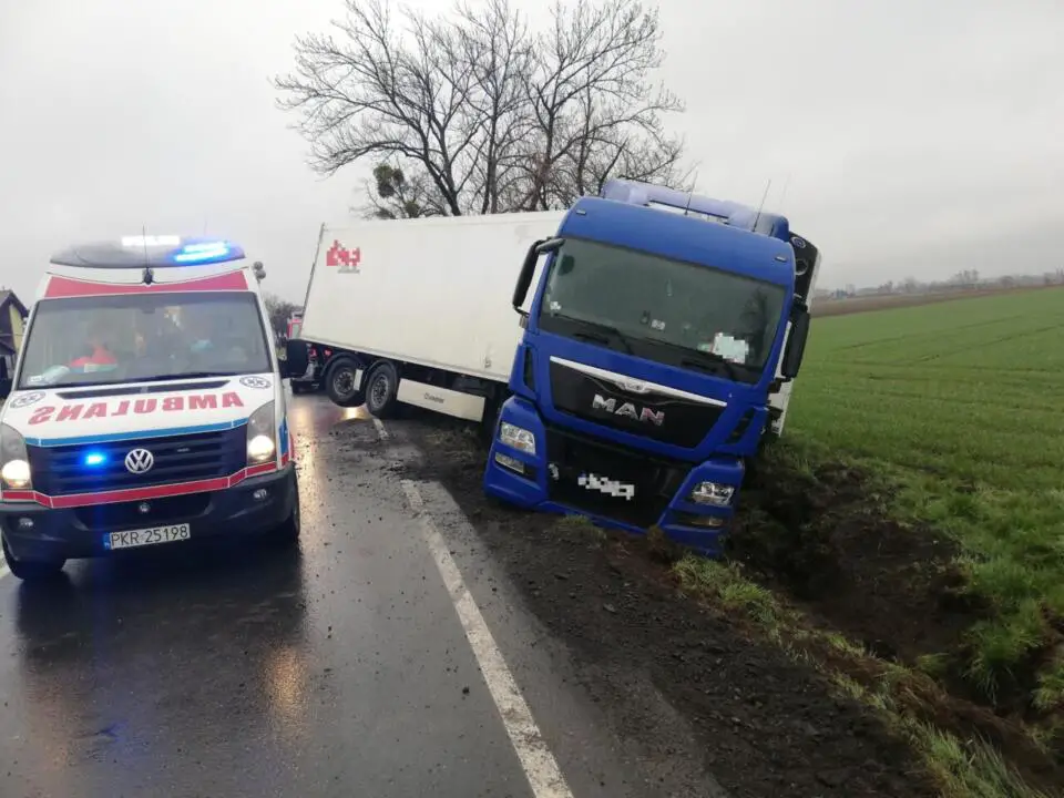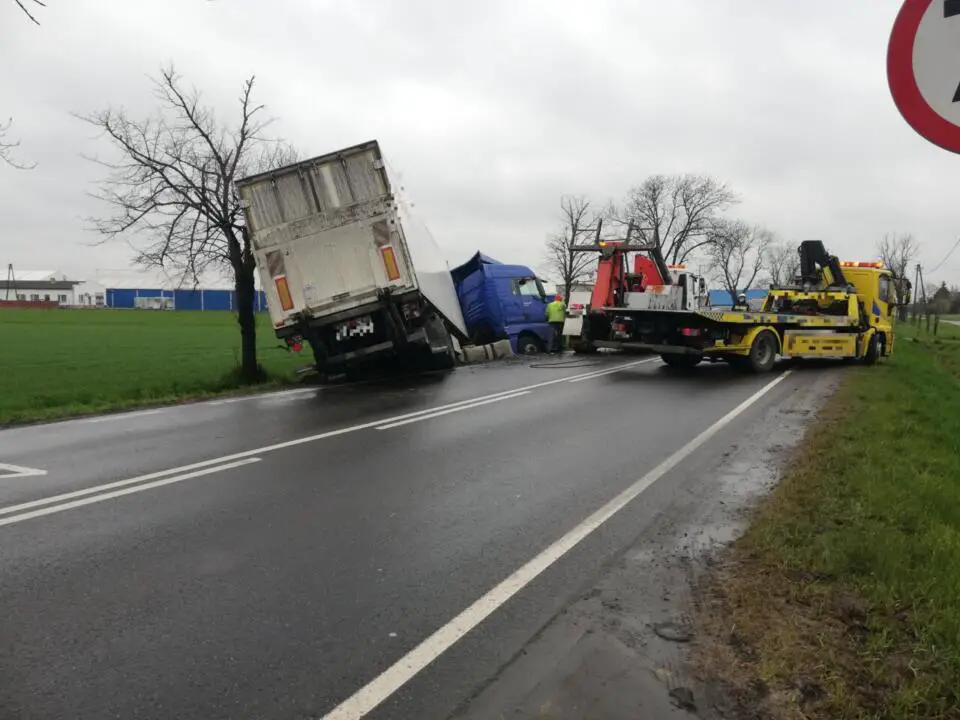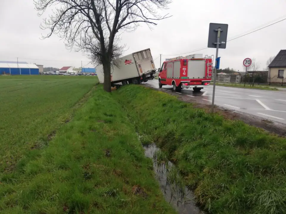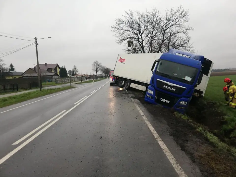 Do zdarzenia doszło w piątek 16 kwietnia, na DK36 w miejscowości Lutogniew. Samochód ciężarowy z nieznanych przyczyn zjechał z drogi i wpadł do rowu.