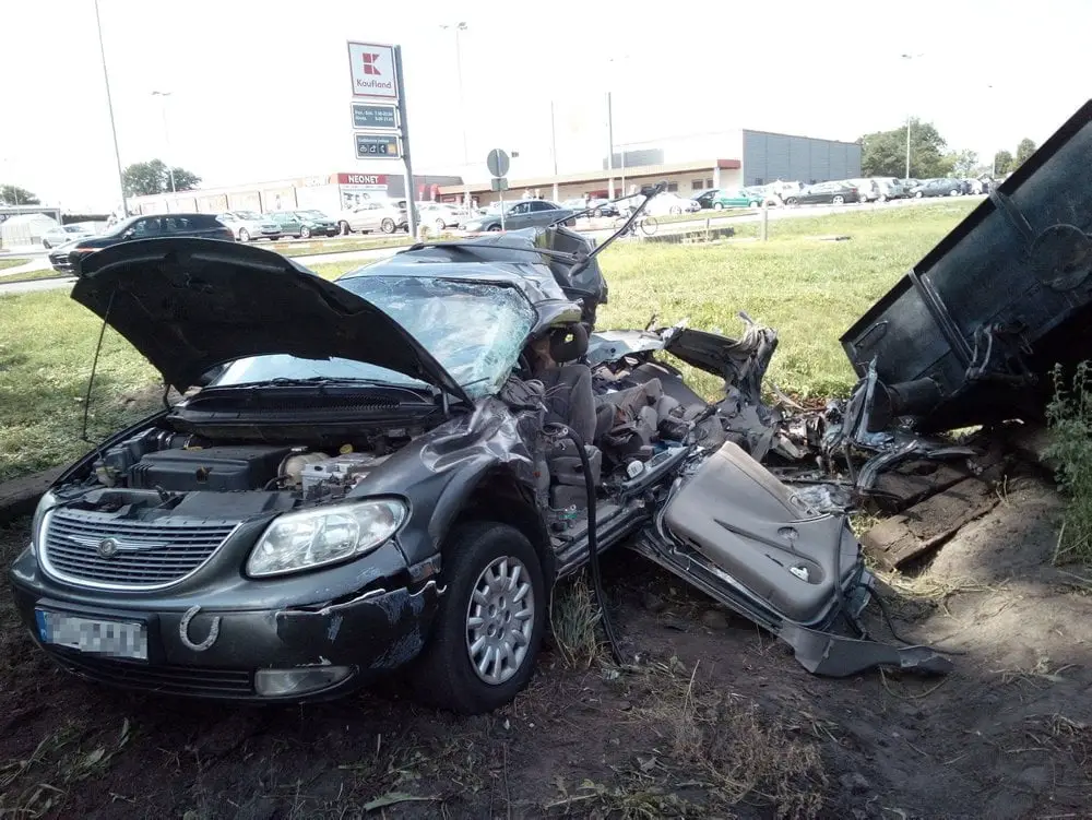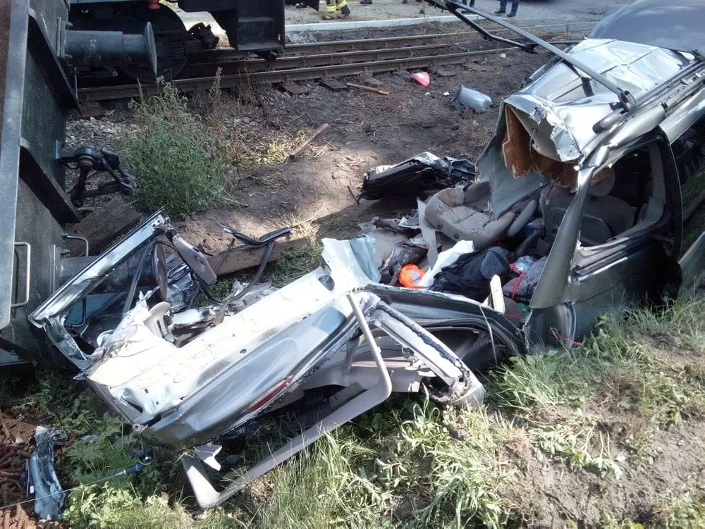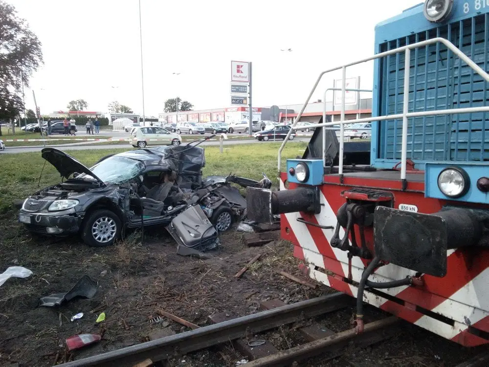 Kierujący chryslerem wjechał pod pociąg. W samochód uderzył jedne z wagonów. Siła była tak duża, że wagon wykoleił się, a chrysler został zmiażdżony.
