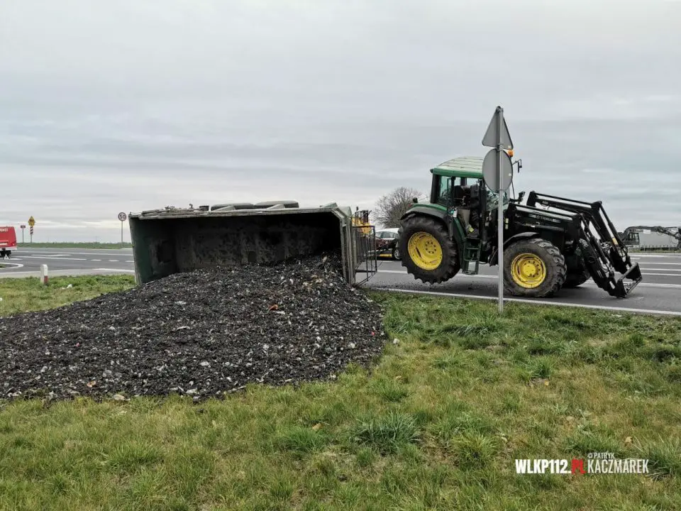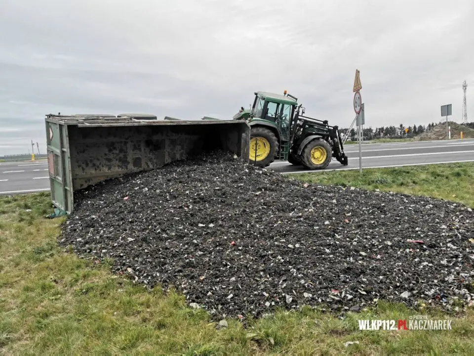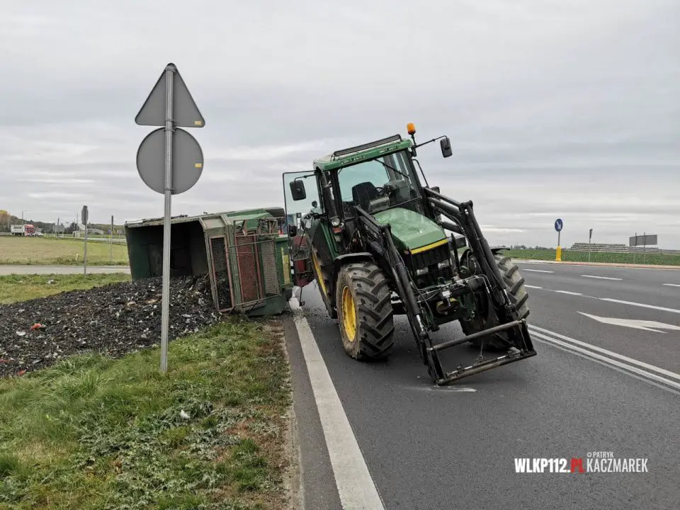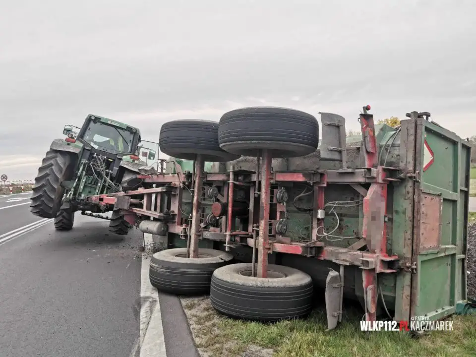Do zdarzenia doszło około godziny 15:00. Za miejscowością Granowo w kierunku Strykowa na 148 kilometrze drogi krajowej numer 32 na łuku drogi ciągnik rolniczy wypadł z drogi. Z naczepy wysypała się przewożony ładunek. Na miejsce zadysponowano jeden zastęp strażaków zawodowych z Jednostki Ratiwniczo-Gaśniczej z Grodziska Wielkopolskiego oraz ochotników z Granowa.