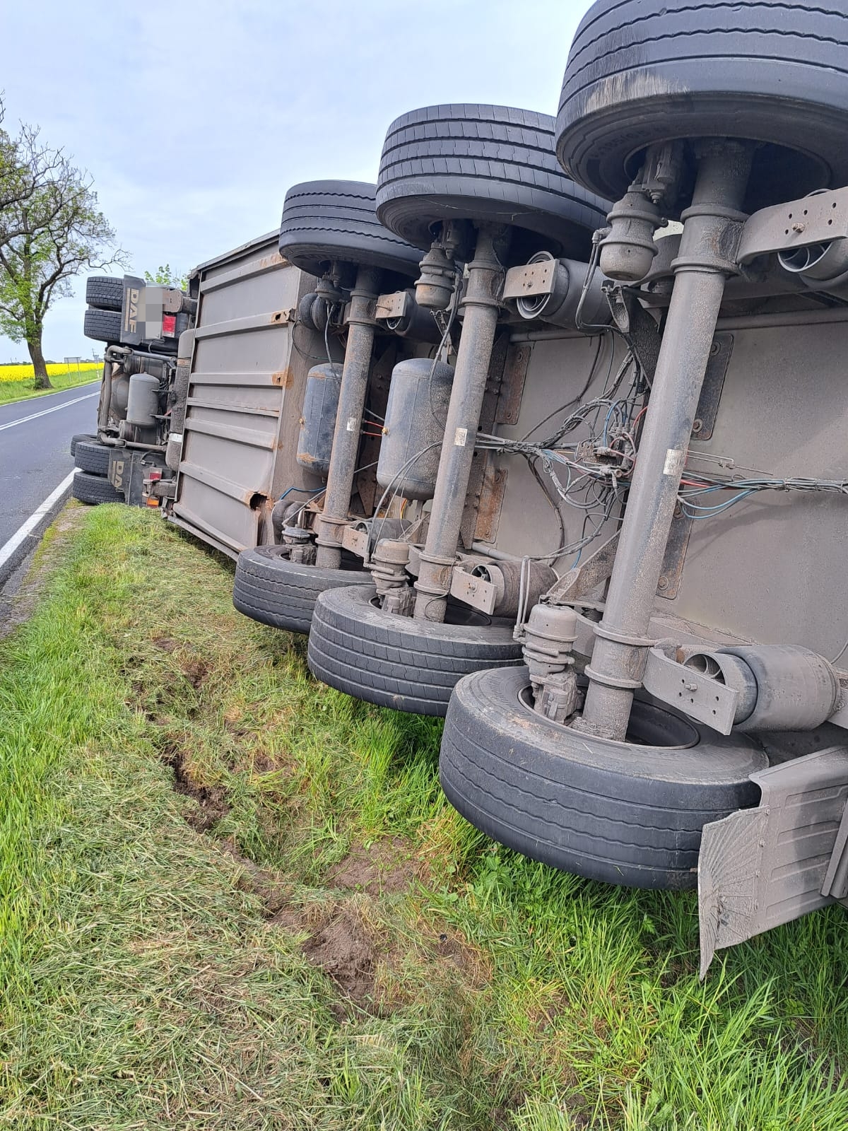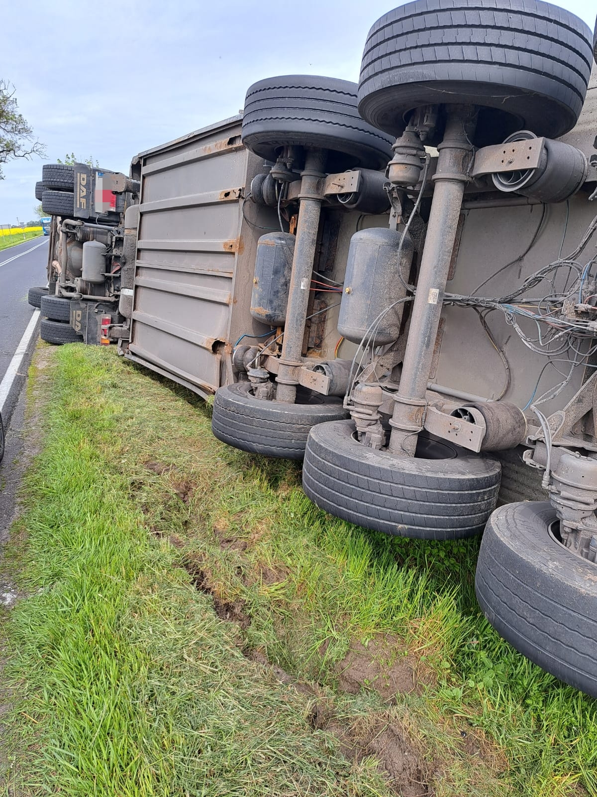 Policjanci którzy zostali skierowani na miejsce ustalili że 48-letni mieszkaniec z Tomaszowa Mazowieckiego kierując samochodem ciężarowym marki DAF wraz ze z naczepą podczas wykonywania manewru cofania wjechał do rowu doprowadzając do wywrócenia pojazdu – informuje portal wlkp112.pl Monika Curyk z gostyńskiej policji