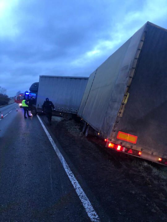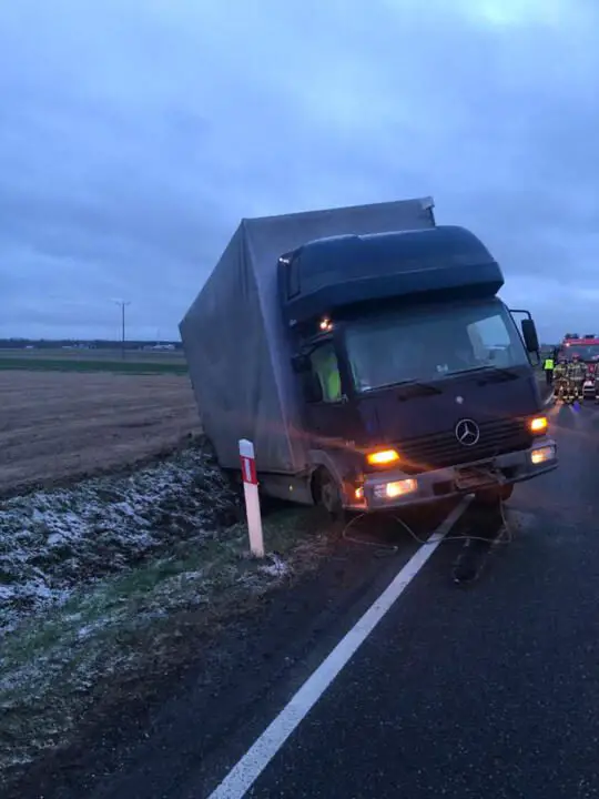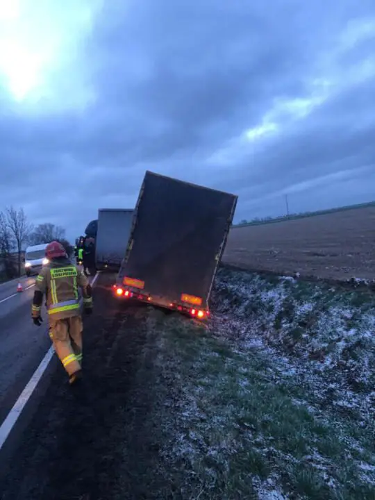 Do zdarzenia doszło we wtorek 06 kwietnia 2021 roku, około godziny 05:53 dyżurny SKKP PSP w Kępnie otrzymał zgłoszenie o wypadku z udziałem ciężarówki z, którego wynikało, że pojazd wjechał do rowu.