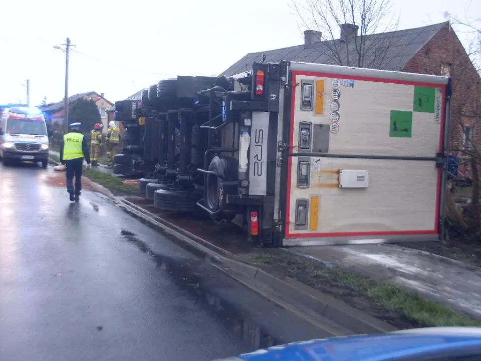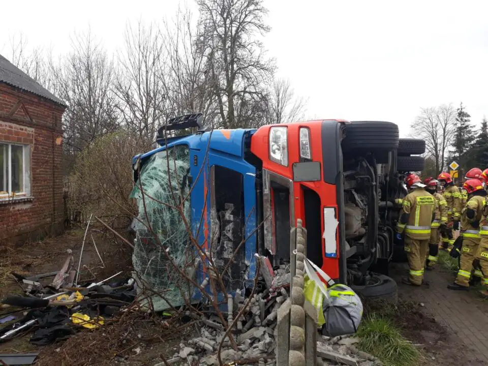 Do wypadku doszło 08 kwietnia 2021 roku, po godzinie 15:00 w m. Jaroszewice Rychwalskie, doszło do groźnie wyglądającego wypadku ciężarówki.