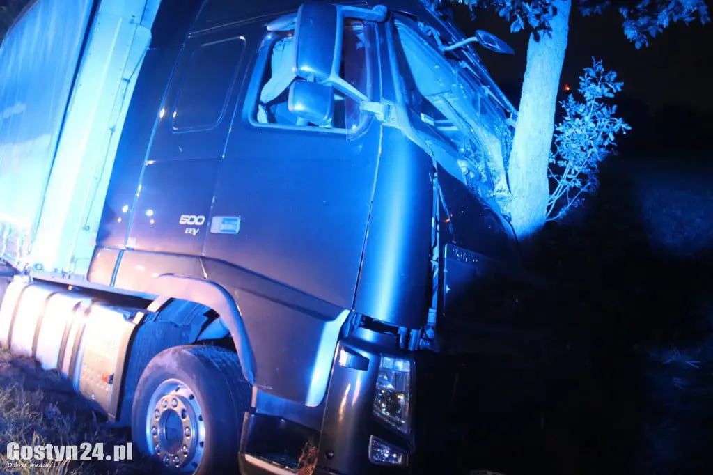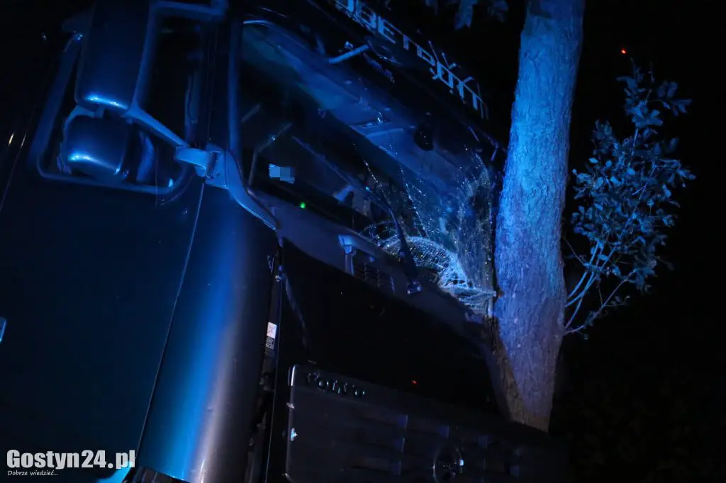 Do wypadku doszło w nocy ze środy na czwartek, 3 września na drodze koło miejscowości Krobia w kierunku Rawicza. Ciężarówka uderzyła w drzewo z taką siłą, że pień wbił się do kabiny.