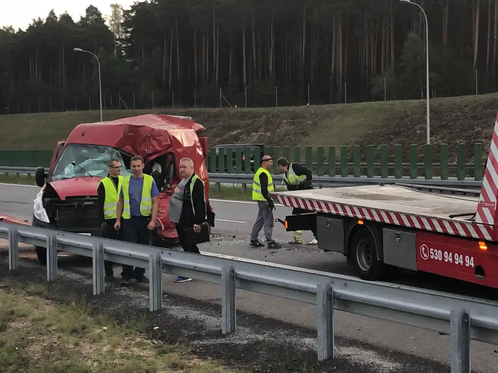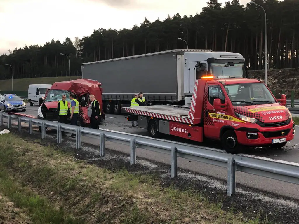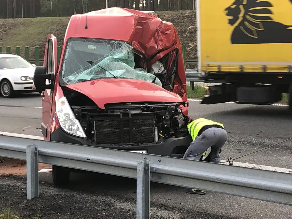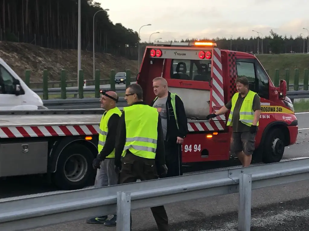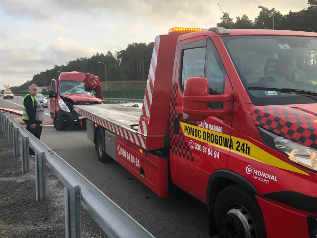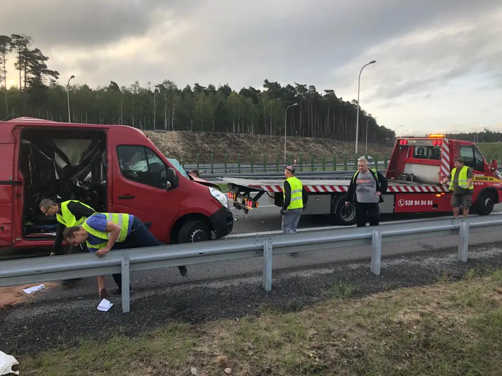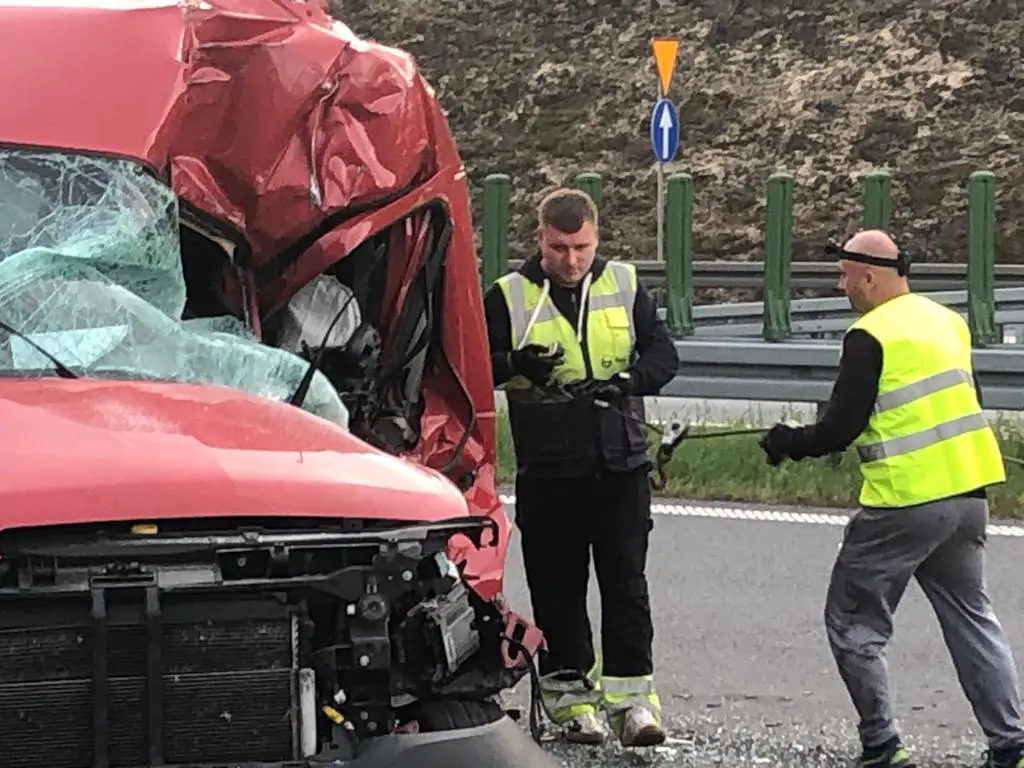 Po godz. 6.00 na trójką ostrzegawczy najechała rozpędzona ciężarówka. Kierowca nie hamując z dużą siłą uderzył w busa pomocy drogowej. Ciężarówka wbiła busa w tył naczepy uszkodzonej ciężarówki dosłownie miażdżąc go. Kierowca przyznał, że zasnął podczas jazdy. Ludzie naprawiający ciężarówkę cudem przeżyli. – Bus uratował nam życie – przyznaje R. Waligórski. Gdy na drodze nie było busa ciężarówka zmiażdżyłaby osoby, które prowadziły naprawę. Osoby, które naprawiały ciężarówkę co chwilę chodziły również do busa po narzędzia. Gdyby ktoś był w buse w chwili uderzenia nie przeżyłby. – Na szczęści nikomu nic się nie stało. To zdarzenie pokazuje jak niebezpieczną pracę wykonujemy każdego dnia – mówi marek Dziubałka z pomocy drogowej Maxmar.