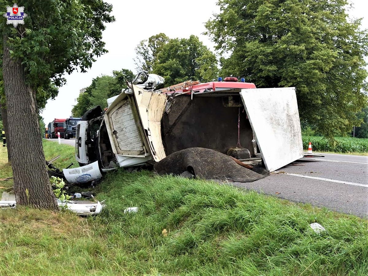 Do tragedii doszło po godzinie 16:00. Dyżurny krasnostawskiej komendy otrzymał zgłoszenie o wypadku w miejscowości Wólka Orłowska. Ze wstępnych ustaleń wynika, że kierujący pojazdem przystosowanym do przewozu zwierząt, mieszkaniec województwa wielkopolskiego, zjechał na pobocze i tam uderzył w drzewo.
