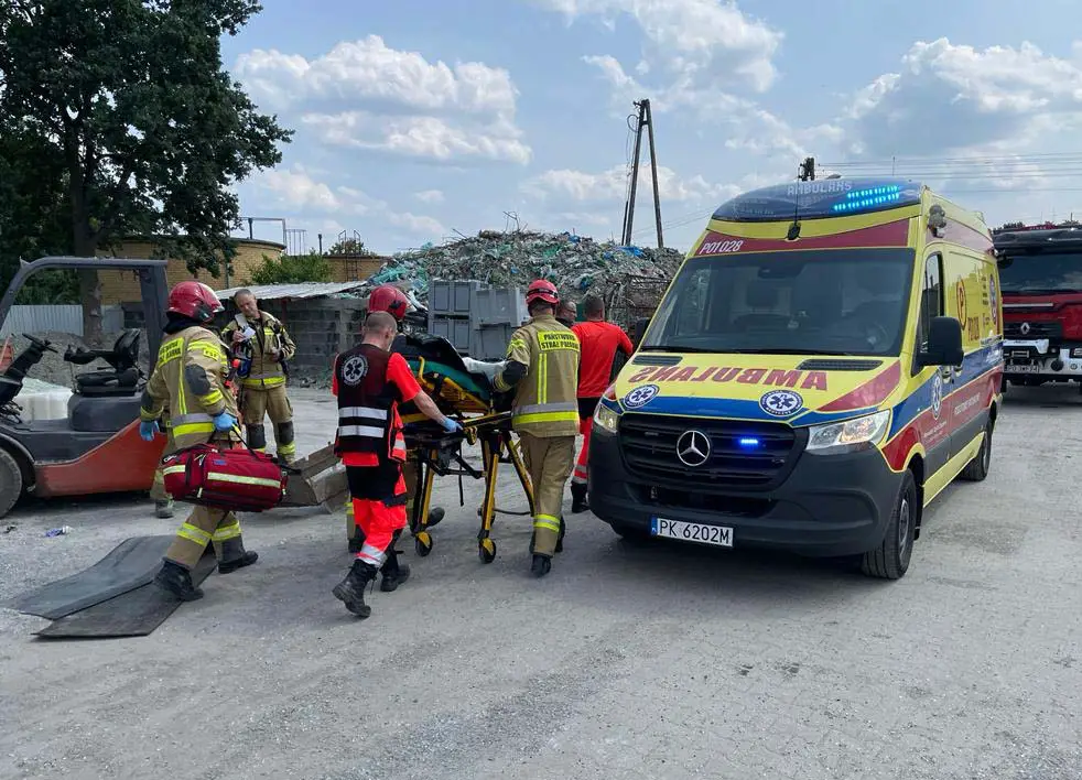 Do ciężkiego wypadku doszło w firmie w Gołuchowie. Podczas pracy maszyna wciągnęła rękę kobiety. Strażacy uwalniali ją sprzętem hydraulicznym.