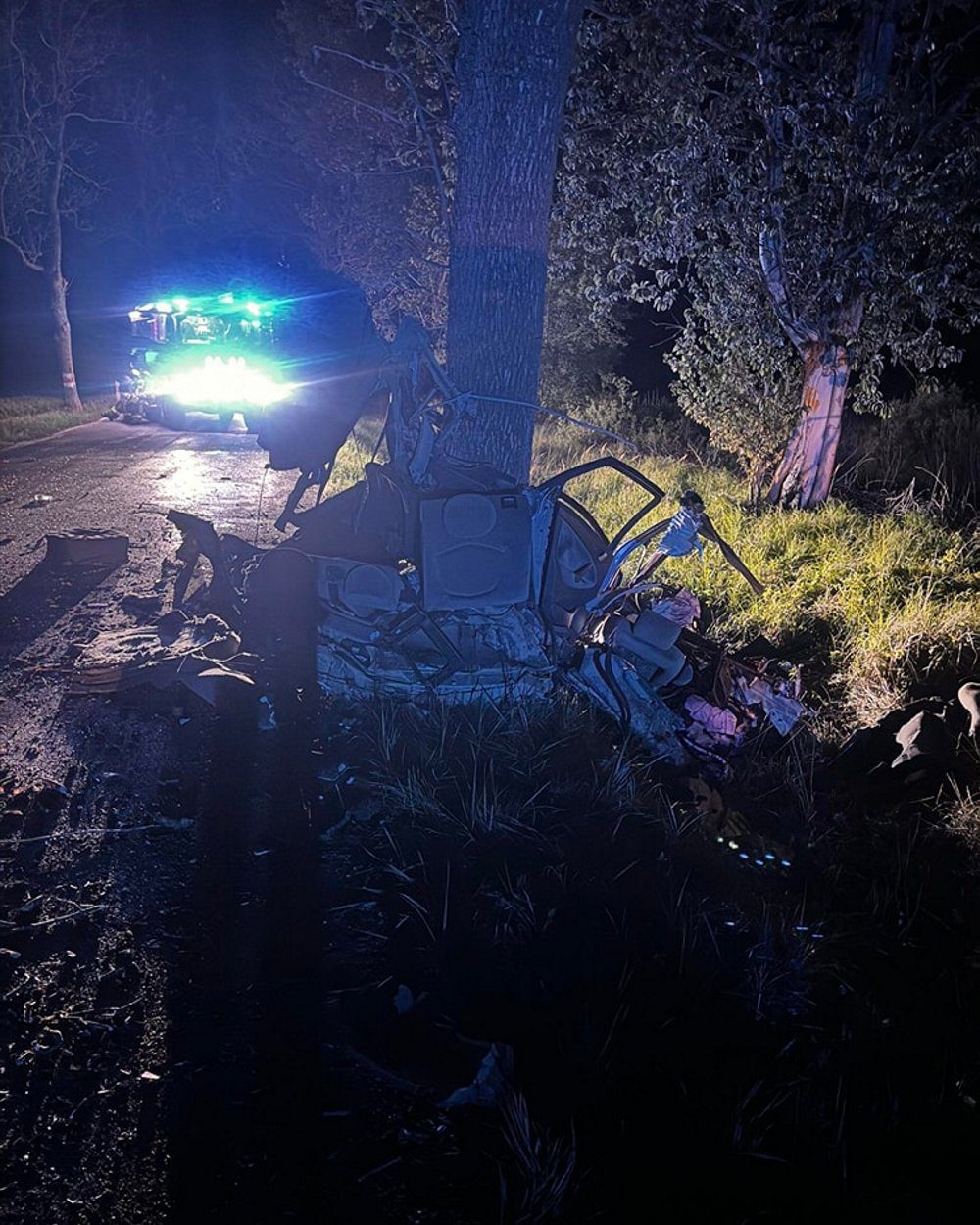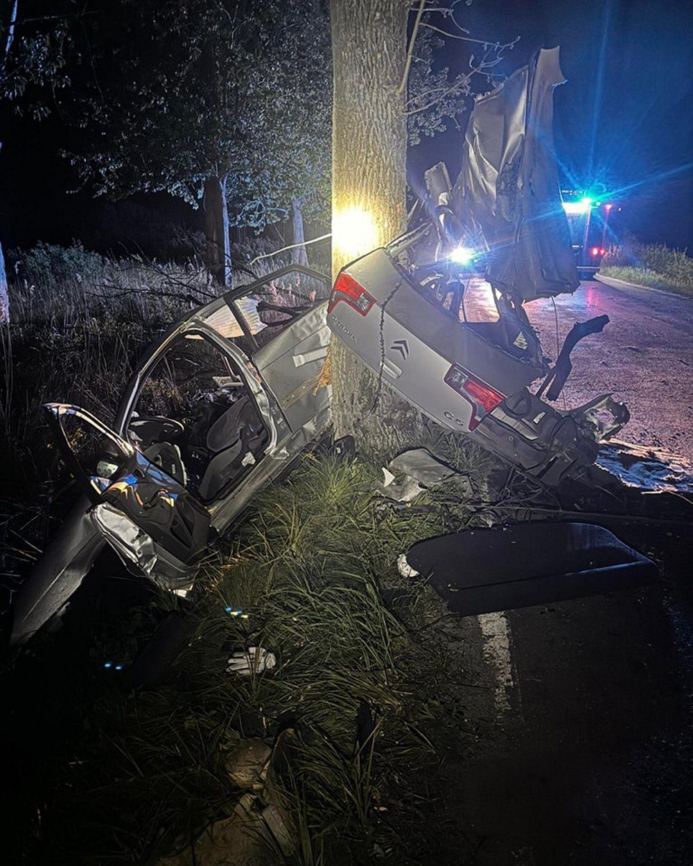 Do poważnego wypadku doszło nocą z 1 na 2 maja na drodze w miejscowości Przemków. Citroen rozpadł się na kawałki. Pijany młody kierowca przeżył.