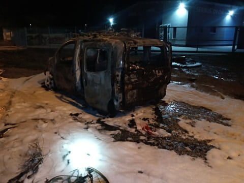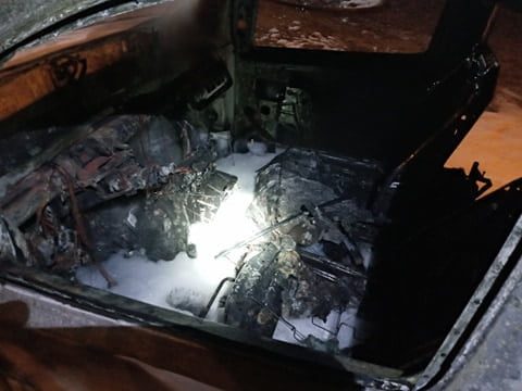 Po dojeździe pierwszego zastępu ogniem był obgięty cały samochód osobowy marki citroen berlingo. Podane zostały dwa prądy piany gaśniczej w natarciu na palący się samochód.
