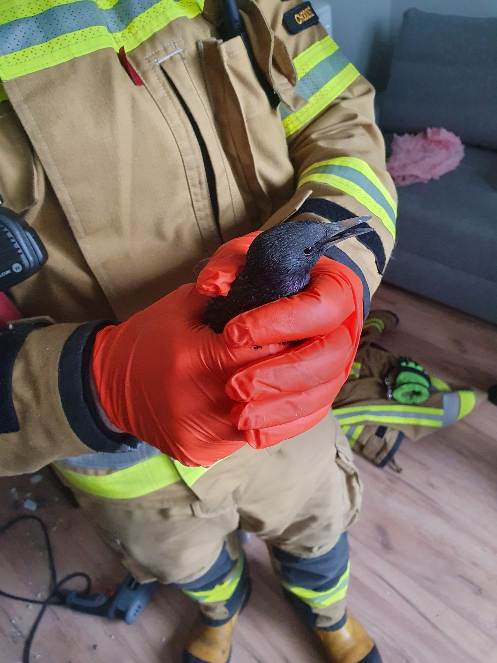 Zadysponowane na miejsce jednostki potwierdziły treść zgłoszenia. Następnie ratownicy po dokładnym zlokalizowaniu ptaka przy użyciu młotka oraz przebijaka wykonali otwór w ścianie pomieszczenia – w przewodzie kominowym i wyciągnęli ptaka, który po wypuszczeniu na wolność odleciał w nieznanym kierunku – informuje bryg. Leszek Naranowicz z Chodzieskiej straży pożarnej