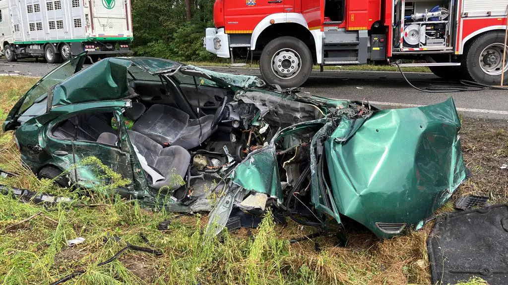 Gdy na miejsce dotarły pierwsze służby ratunkowe zastali samochód osobowym, z którego został tylko wrak i znajdował się w rowie. To cud, że kierowca nie zginął.