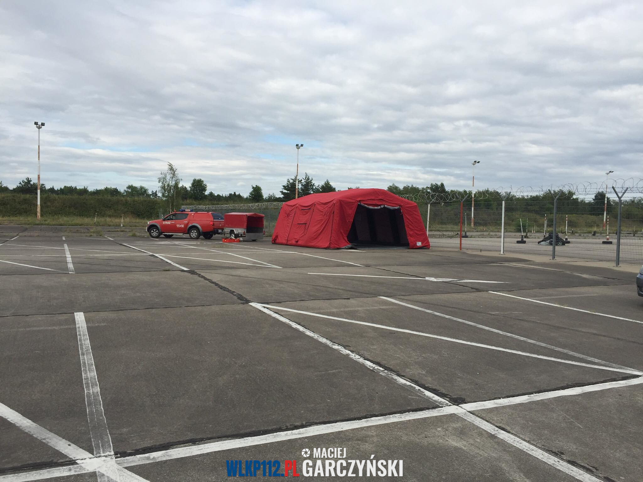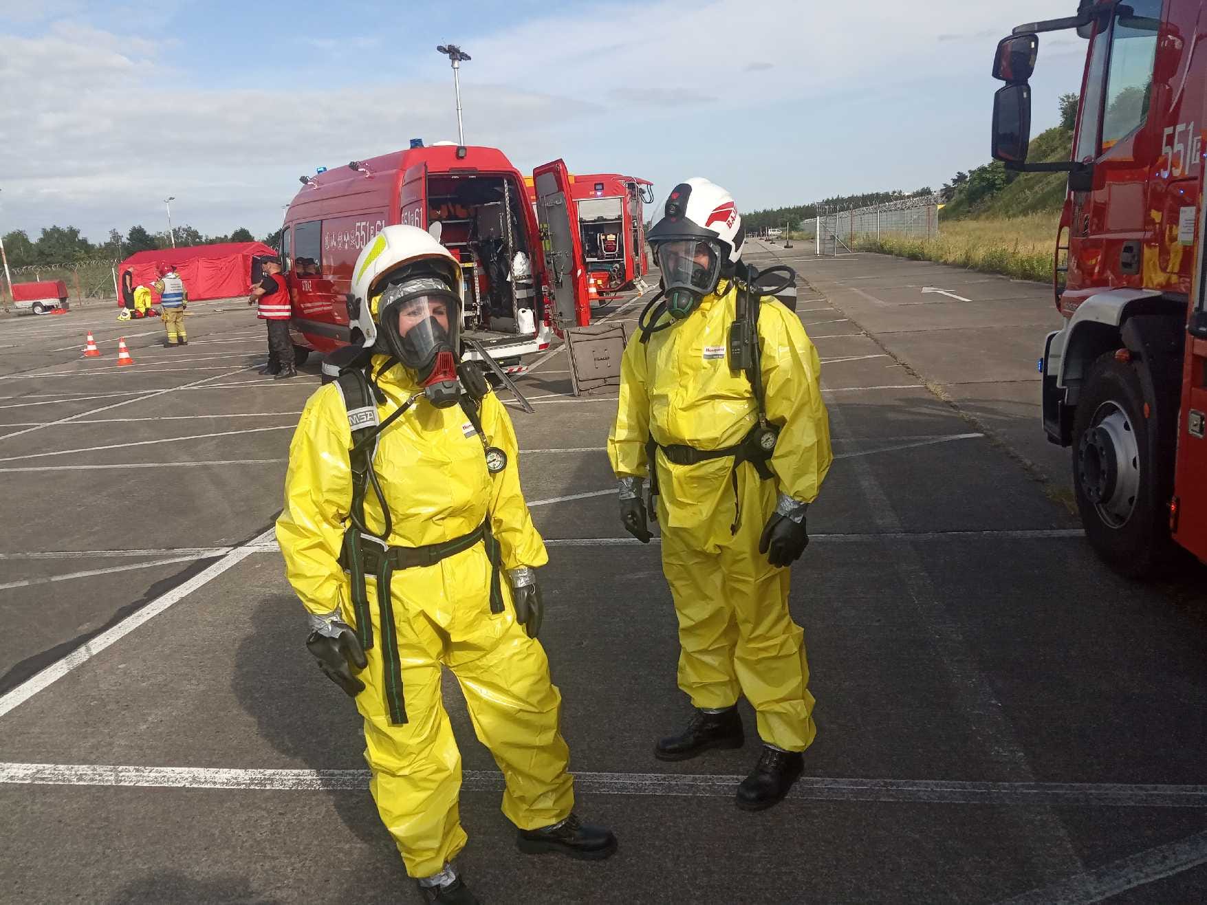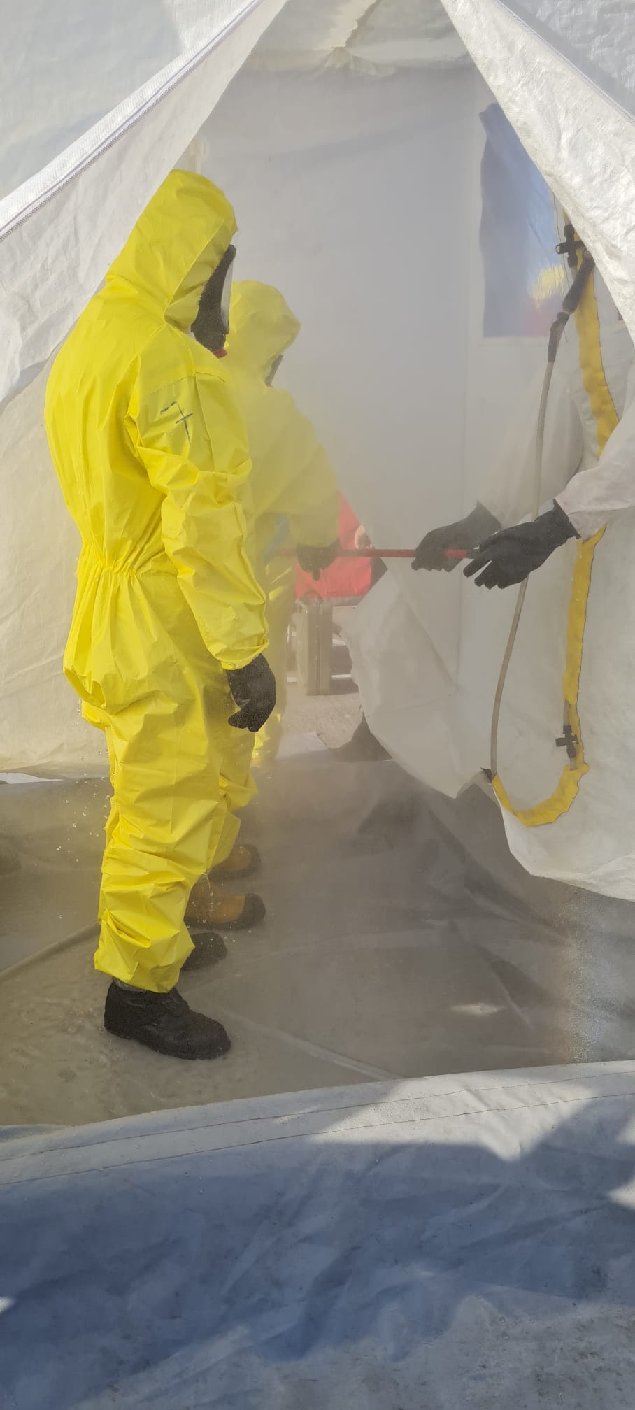 Kolejnym etapem było przygotowanie miejsca do dekontaminacji. W tym celu wspólnie przygotowano namioty gdzie następnie ćwiczono usuwanie substancji z osób poszkodowanych i ratowników uczestniczących w działaniach.