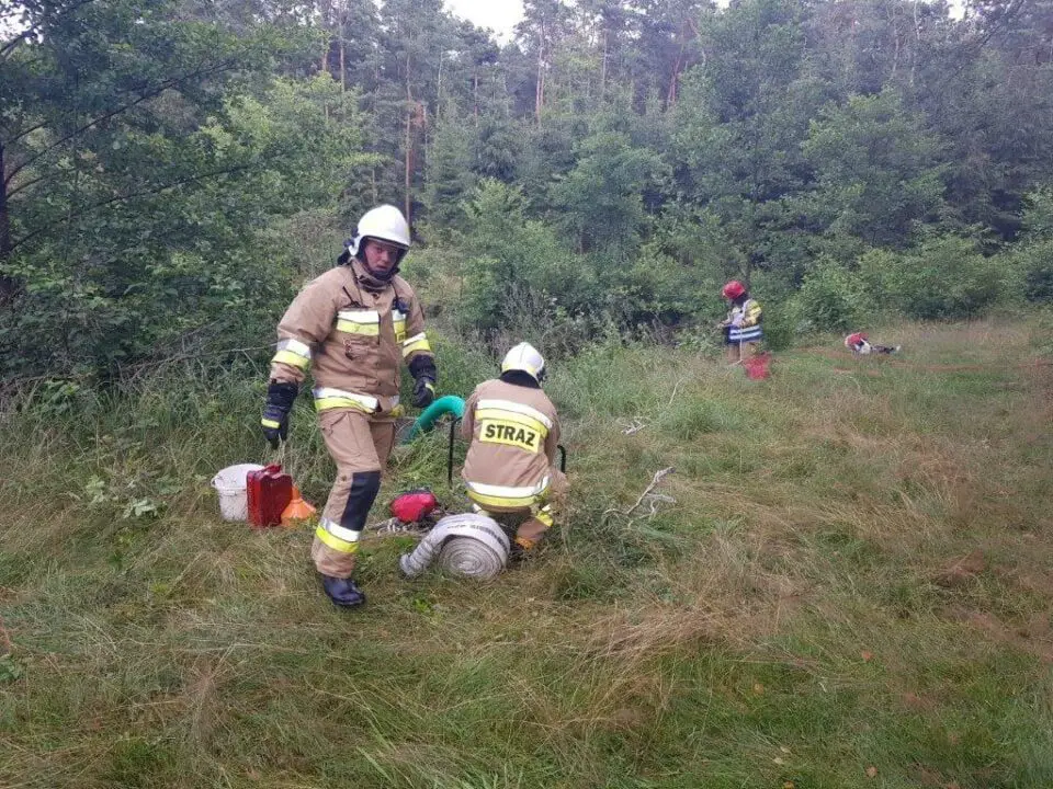Całości wykonywanych zadań praktycznych przyglądał się Komendant Powiatowy PSP st. bryg. Zbigniew Dziwulski wspólnie z Nadleśniczym Nadleśnictwa Durowo panem Sławomirem Kołaczem.