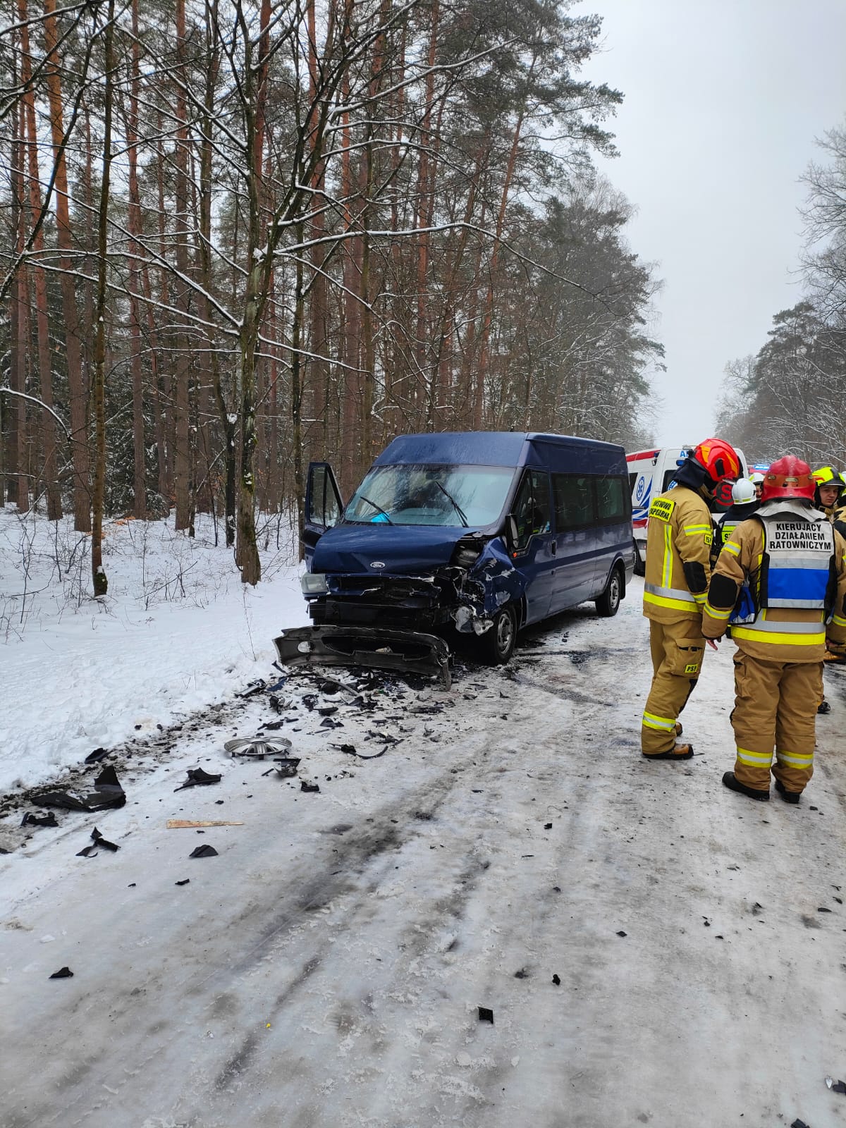 Trzy osoby trafiły do szpitala po czołowym zderzeniu busa oraz osobówki w powiecie złotowski. Od samego rana warunki do jazdy w całym powiecie były bardzo trudne.