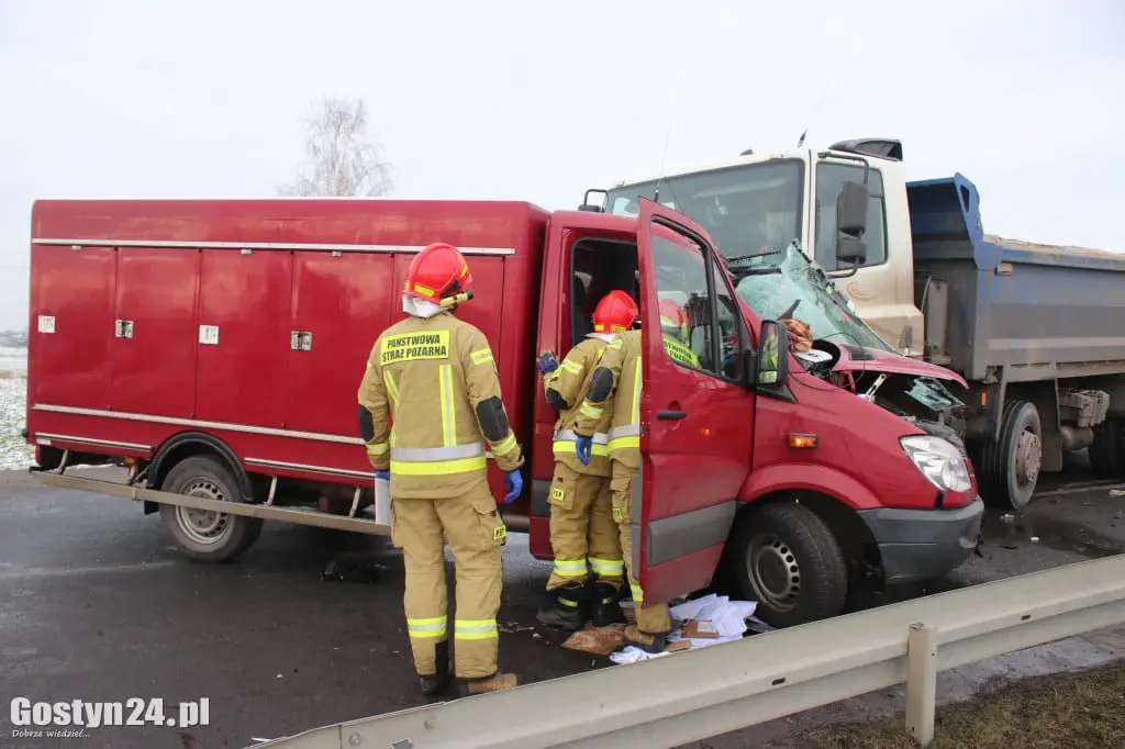 Wypadek na trasie Gostyń-Grabonóg. Zderzyły się dwa samochody – ciężarówka z busem. W jednym z pojazdów uwięziony został jego kierowca, a dostęp do niego był bardzo utrudniony. W końcu udało się wyciągnąć mężczyznę i przekazać go załodze karetki pogotowia.