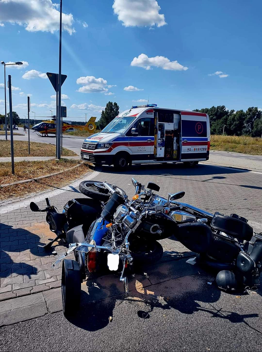67-letni motocyklista drogą lotniczą została przetransportowany do szpitala w Zielonej Górze.