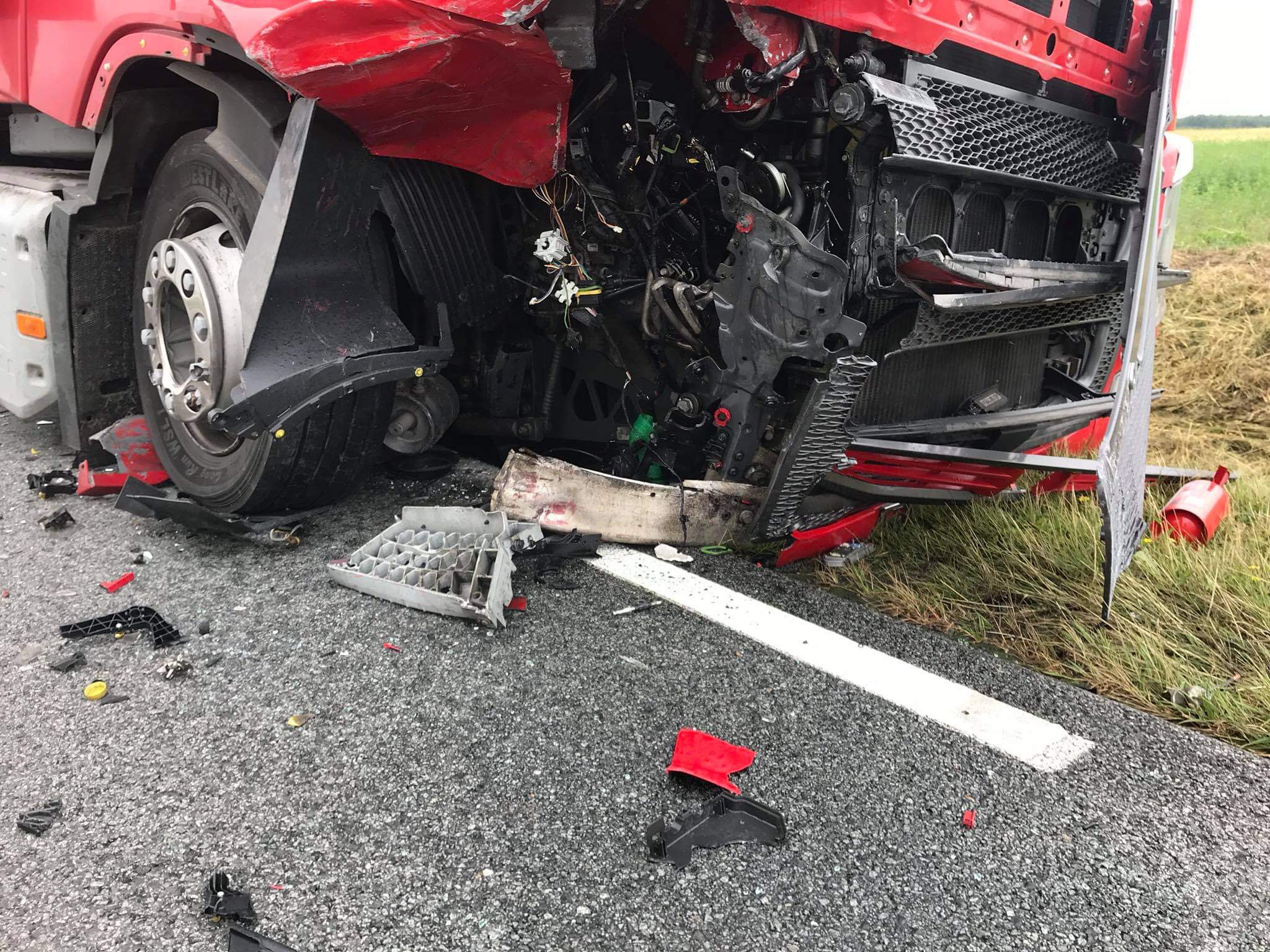 Kierujący opuścili pojazdy przed przybyciem SP i znajdowali się w pobliżu. Samochód ciężarowy znajdował się częściowo na poboczu i pasie ruchu, natomiast pojazd osobowy znajdował się na pobliskim polu.