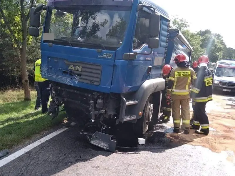 Siła zderzenia obu pojazdów była tak duża, że Volkswagen odbił się od kabiny Mana i zatrzymał się za jego naczepą w rowie po lewej stronie drogi.