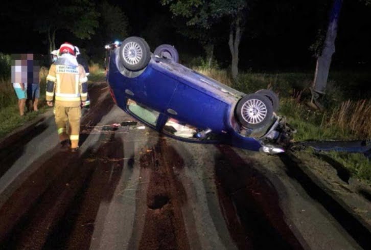 Samochodem osobowym marki Fiat Punto 26-letni mężczyzna mieszkaniec Leszna, który podróżował sam na ulicy Mórkowskiej w pewnym momencie, prowadzone przez 26-latka auto zjechało z drogi i uderzyło w drzewo, a nastepnie doszło do jego dachowania.