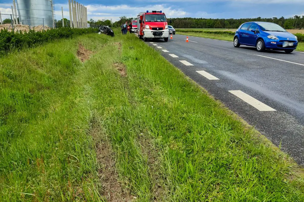 Po przybyciu na miejsce zadysponowanych zastępów straży pożarnej w wyniku rozpoznania ustalono, że pojazd osobowy dachował i znajduje się w rowie. Cztery osoby, które podróżowały są na zewnątrz pojazdu.