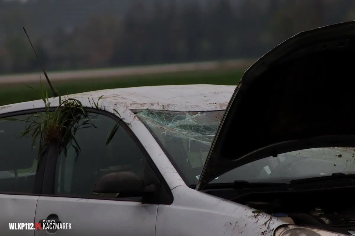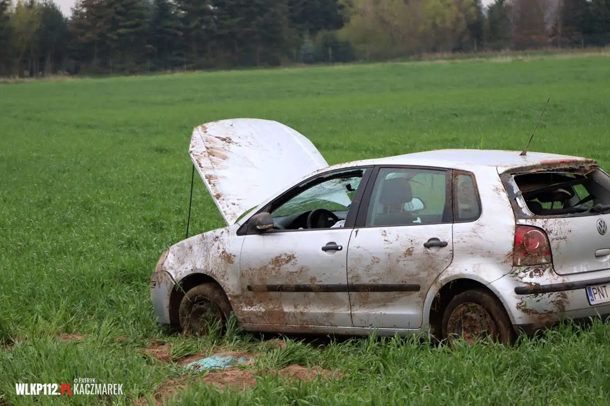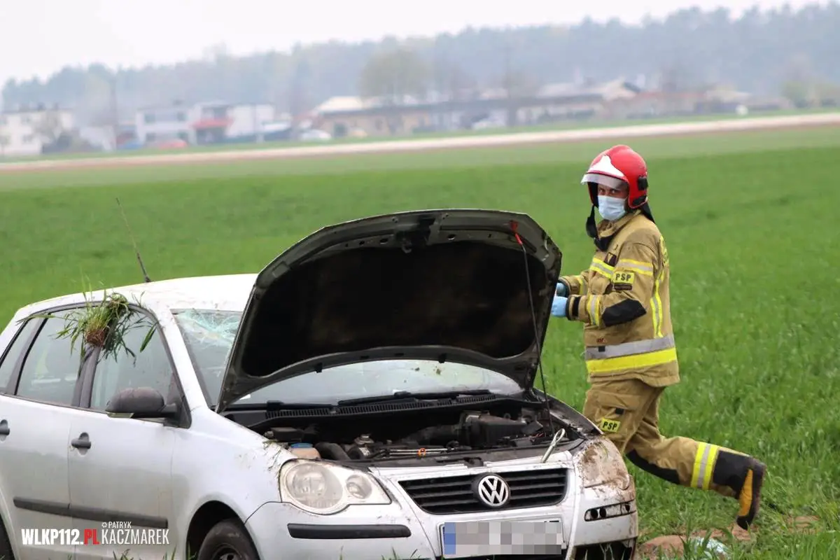 Po dojeździe na miejsce pierwszego zastępu straży pożarnej, okazało się, że na łuku drogi samochód osobowy marki volkswagen polo wypadł z drogi po czym dachował w przydrożnym polu. Na skutek dachowania samochodem jedna osoba została ranna, która została przetransportowana do szpitala. Do działań strażaków należało zabezpieczenie miejsca zdarzenia, odłączeniu akumulatora z pojazdu, udzielenie kwalifikowanej pierwszej pomocy do czasu przybycia zespołu ratownictwa medycznego oraz postawieniu pojazdu na koła.