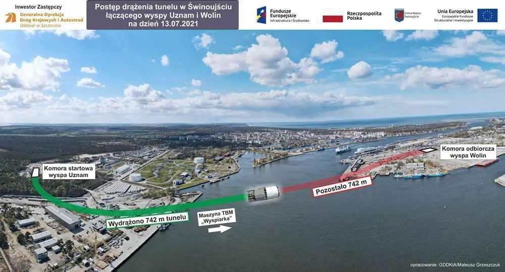 Jak informuje Generalna Dyrekcja Dróg Krajowych i Autostrad, maszyna drążąca „Wyspiarka” ułożyła 417 pierścieni obudowy. Z każdym dniem zbliża się do brzegu cieśniny Świna od strony wyspy Wolin.