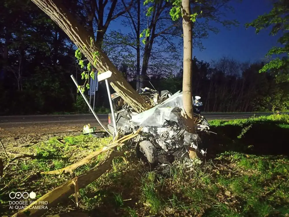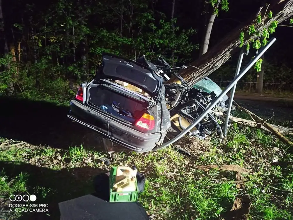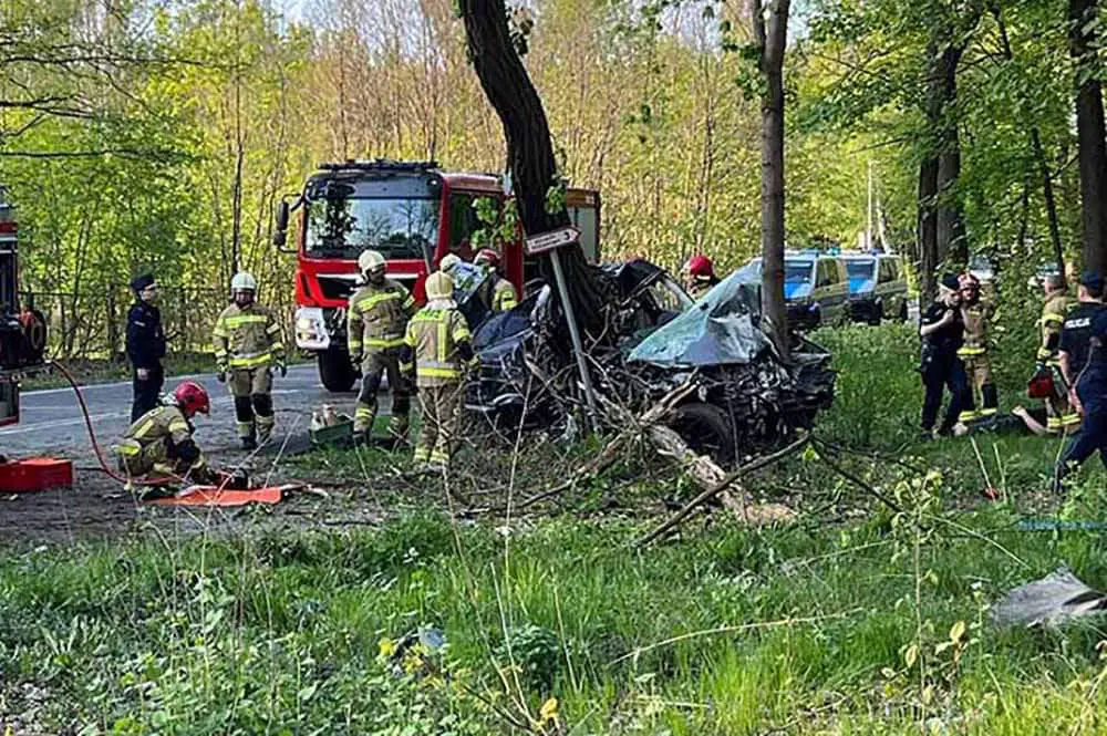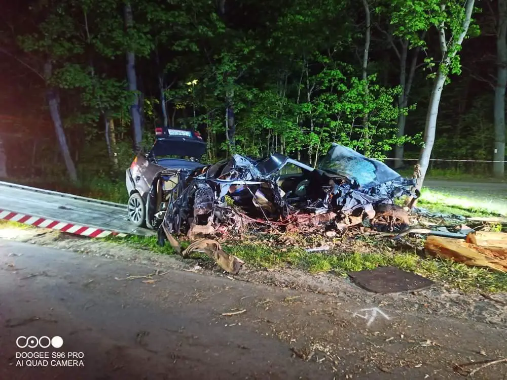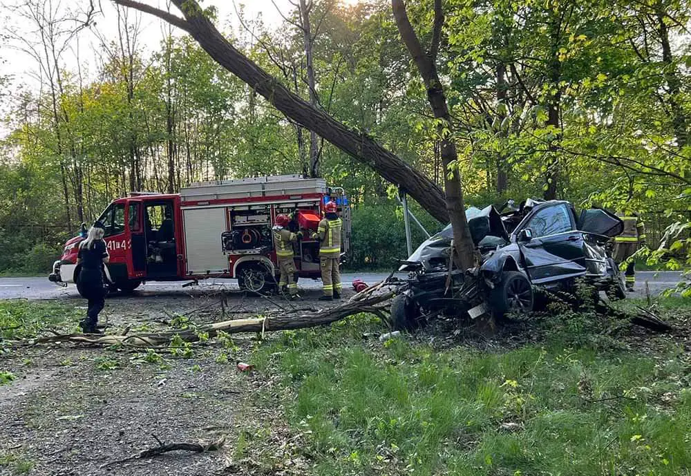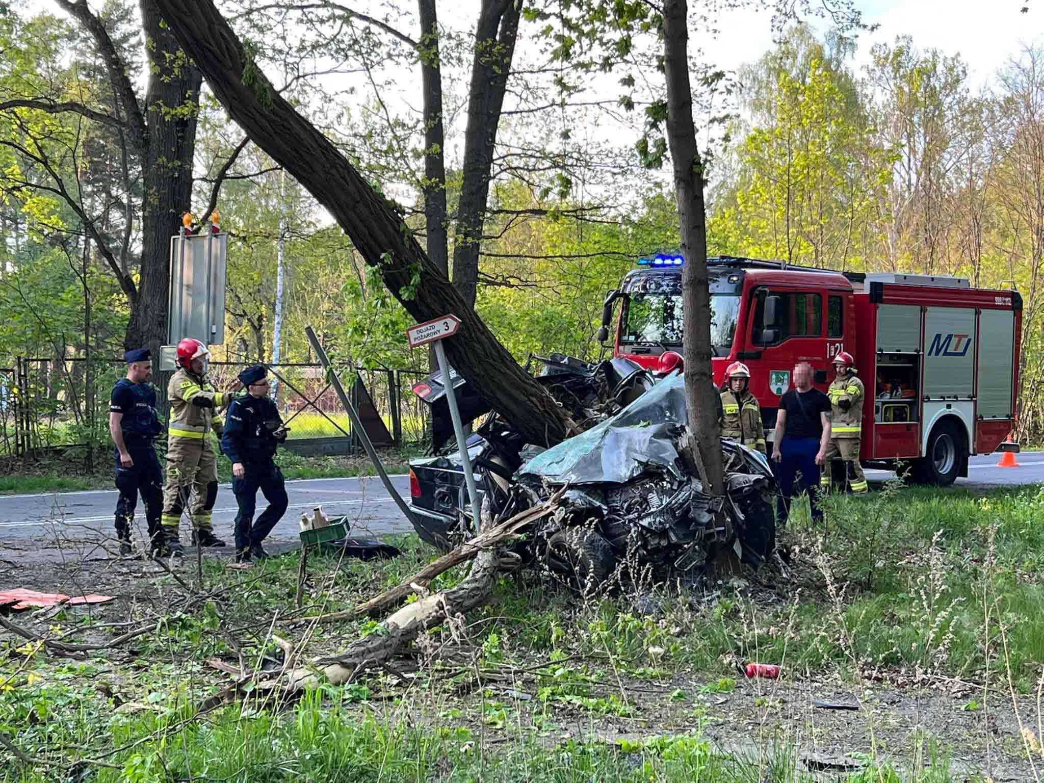 Do wypadku doszło na wysokości Dzikiej Ochli. Rozpędzone bmw wypadło z drogi i z potężną siłą uderzyło w drzewo. Siła uderzenia była tak duża, że bmw dosłownie owinęło się na pniu drzewa. Drzewo w wyniku zderzenia zostało złamane. Musieli je ściąć strażacy.