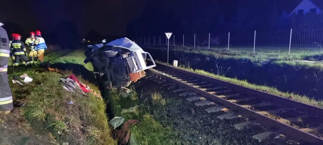 Dostawczak zderzył się z pociągiem. To cud, że nikt nie zginął. Kierujący młody mężczyzna nie posiadał uprawnień do kierowania pojazdem.
