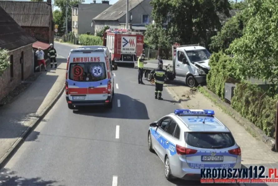 Z treści zgłoszenia wynikało, że samochód dostawczy uderzył w płot ogrodzeniowy jednej z posesji. Na miejsce zdarzenia skierowano dwa zastępy z Jednostki Ratowniczo – Gaśniczej w Krotoszynie, miejscową jednostkę OSP Krotoszyn oraz pogotowie ratunkowe i policję.