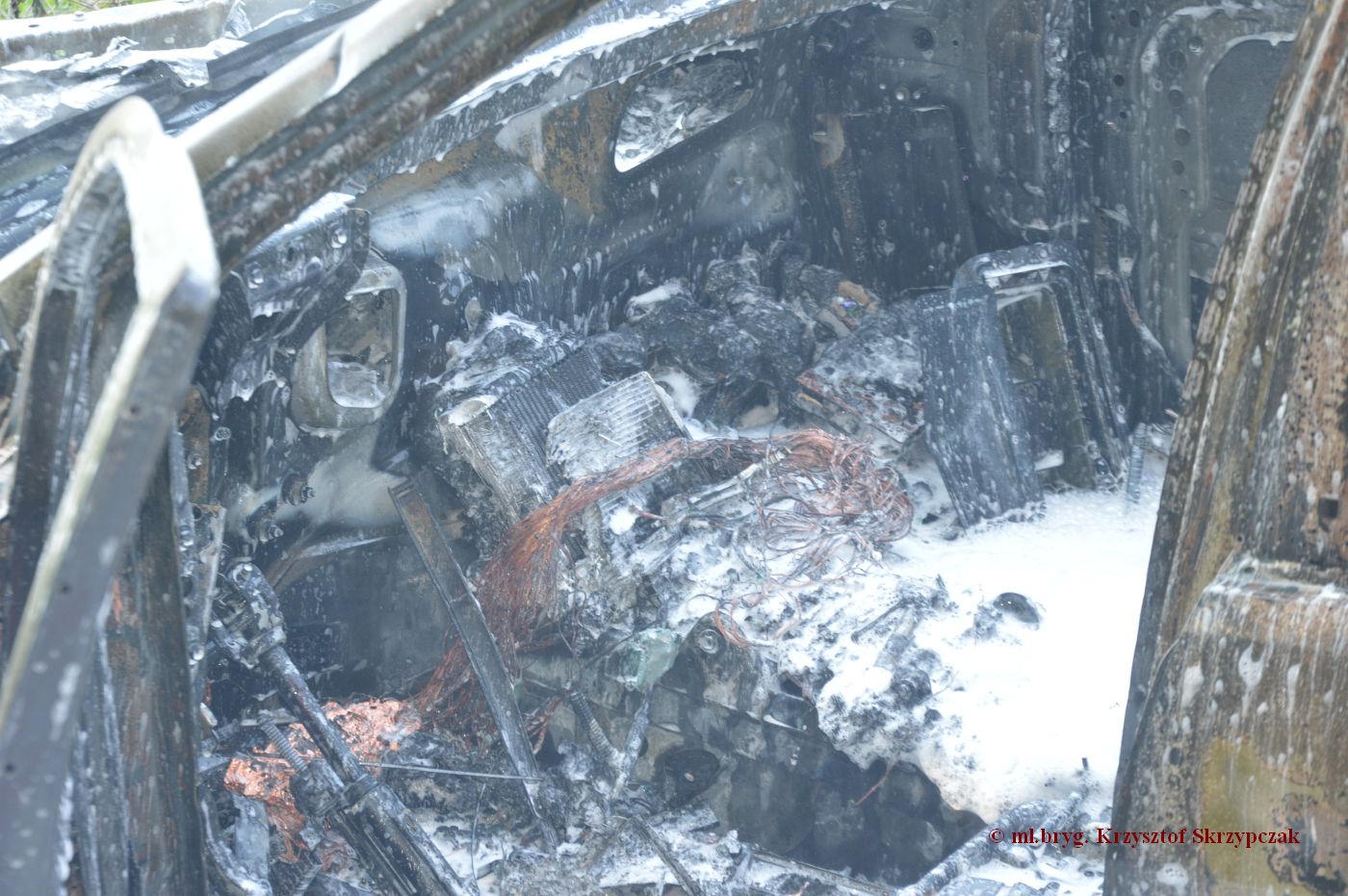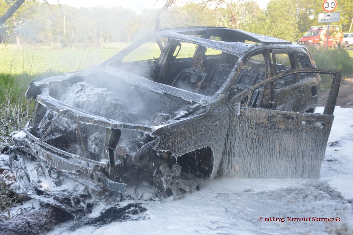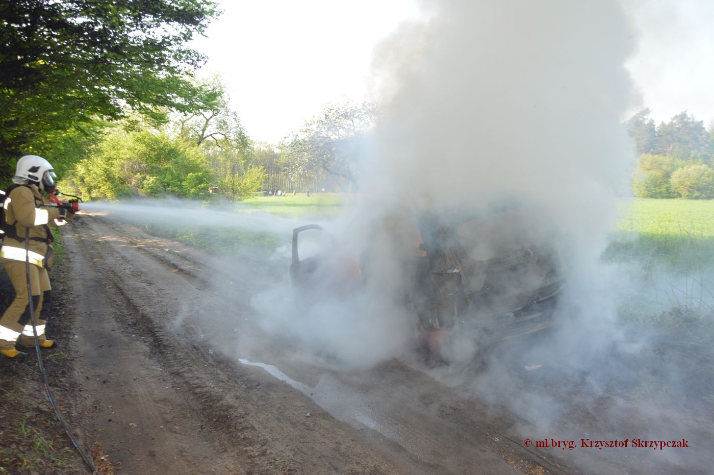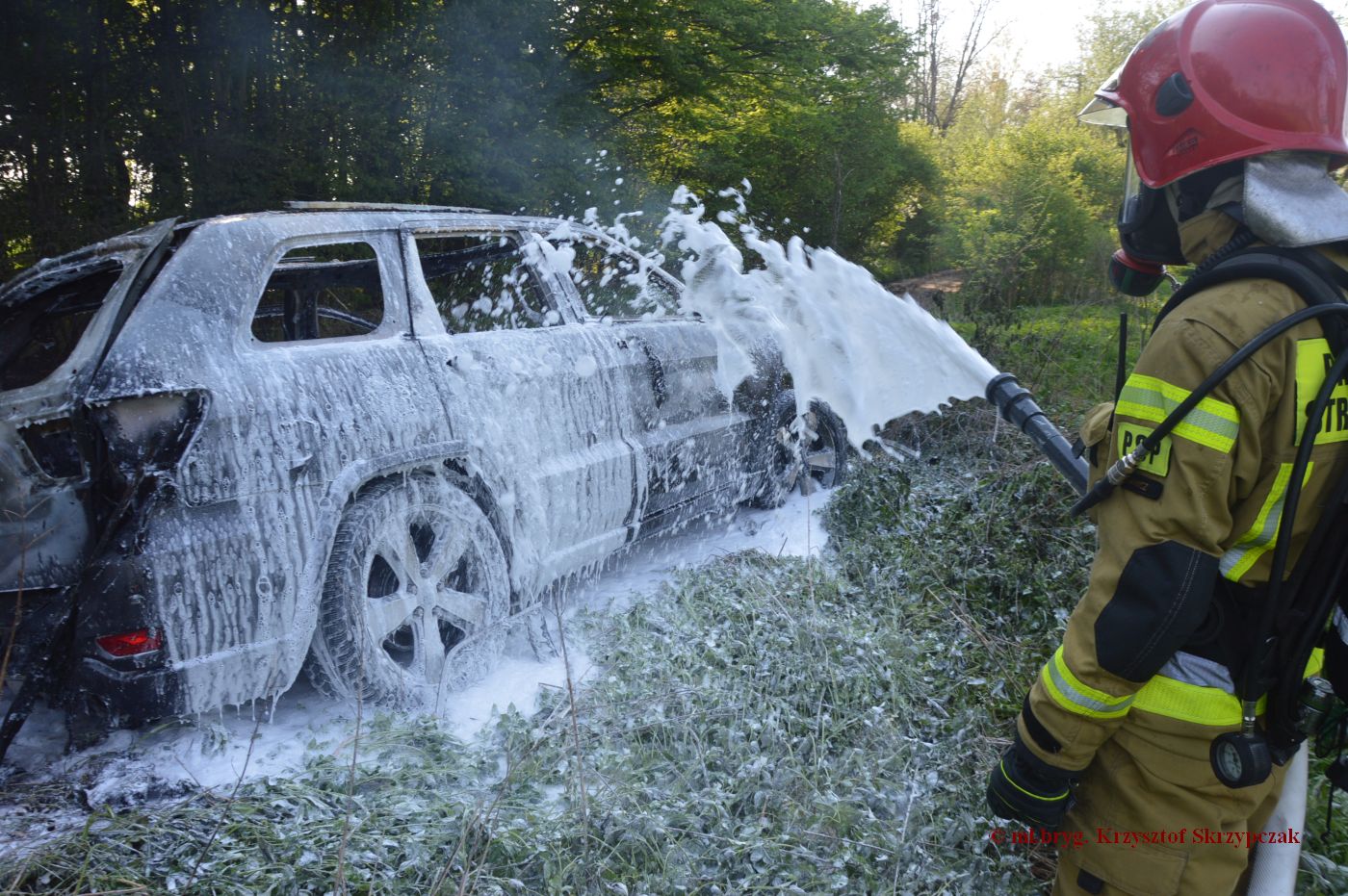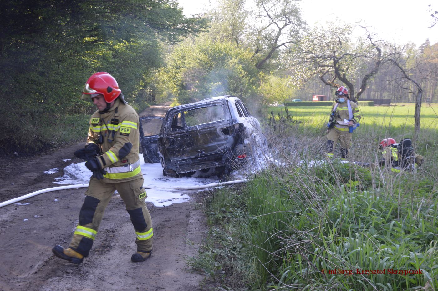 Terenowe auto spłonęło dziś po południu na gruntowej drodze w pobliżu leśniczówki w Leśnictwie Dębno. Kierujący nim mężczyzna doznał poparzeń rąk. Strażacy udzielili mu kwalifikowanej pierwszej pomocy.