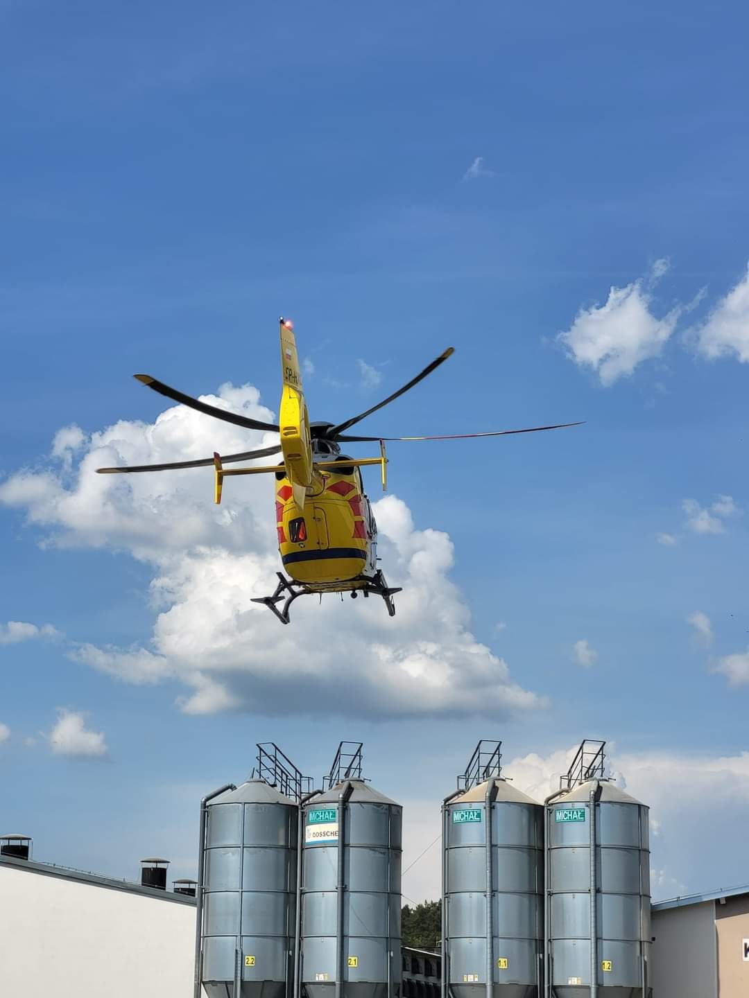 Wszystko wydarzyło się w sobotę 4 maja około godziny 13:30. Wówczas to grodziskie służby ratunkowe otrzymały zgłoszenie o wypadku na terenie jednej z firm. Na miejsce zdarzenia natychmiast zadysponowano strażaków zawodowych i ochotników z Grodziska Wielkopolskiego, policję, śmigłowiec Lotniczego Pogotowia Ratunkowego „Ratownik 9” z Poznania.