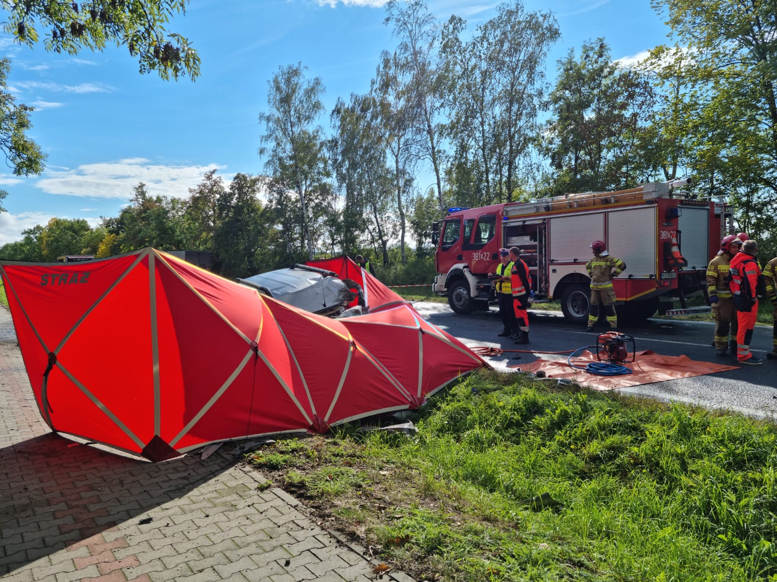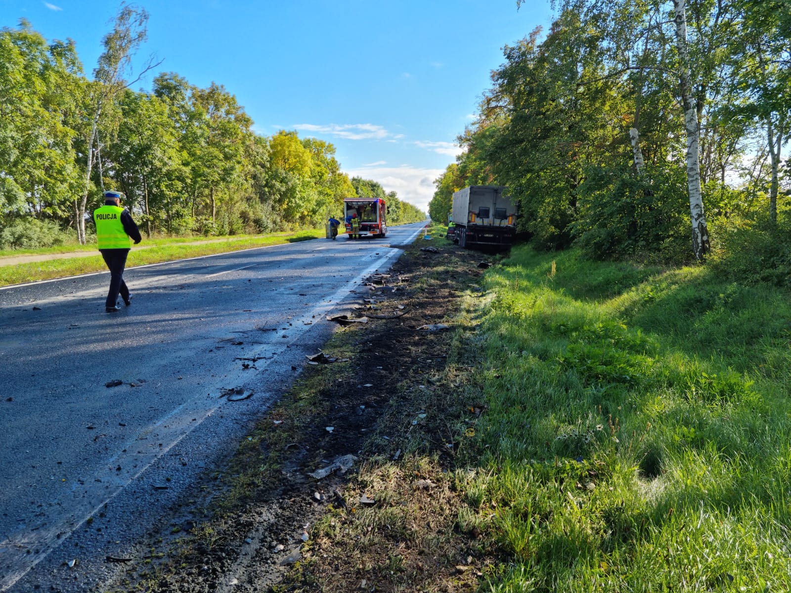 Wszystko wydarzyło się w poniedziałek 26 września około godziny 14:00 na drodze wojewódzkiej numer 309 pomiędzy Rydzyną a Augustowo doszło do wypadku z udziałem samochodu osobowego i ciężarowego. Na miejsce natychmiast zadysponowano strażaków zawodowych z Jednostki Ratowniczo-Gaśniczej z Leszna, ochotników z Rydzyny, Bojanowa, a także zespół ratownictwa medycznego i policję.