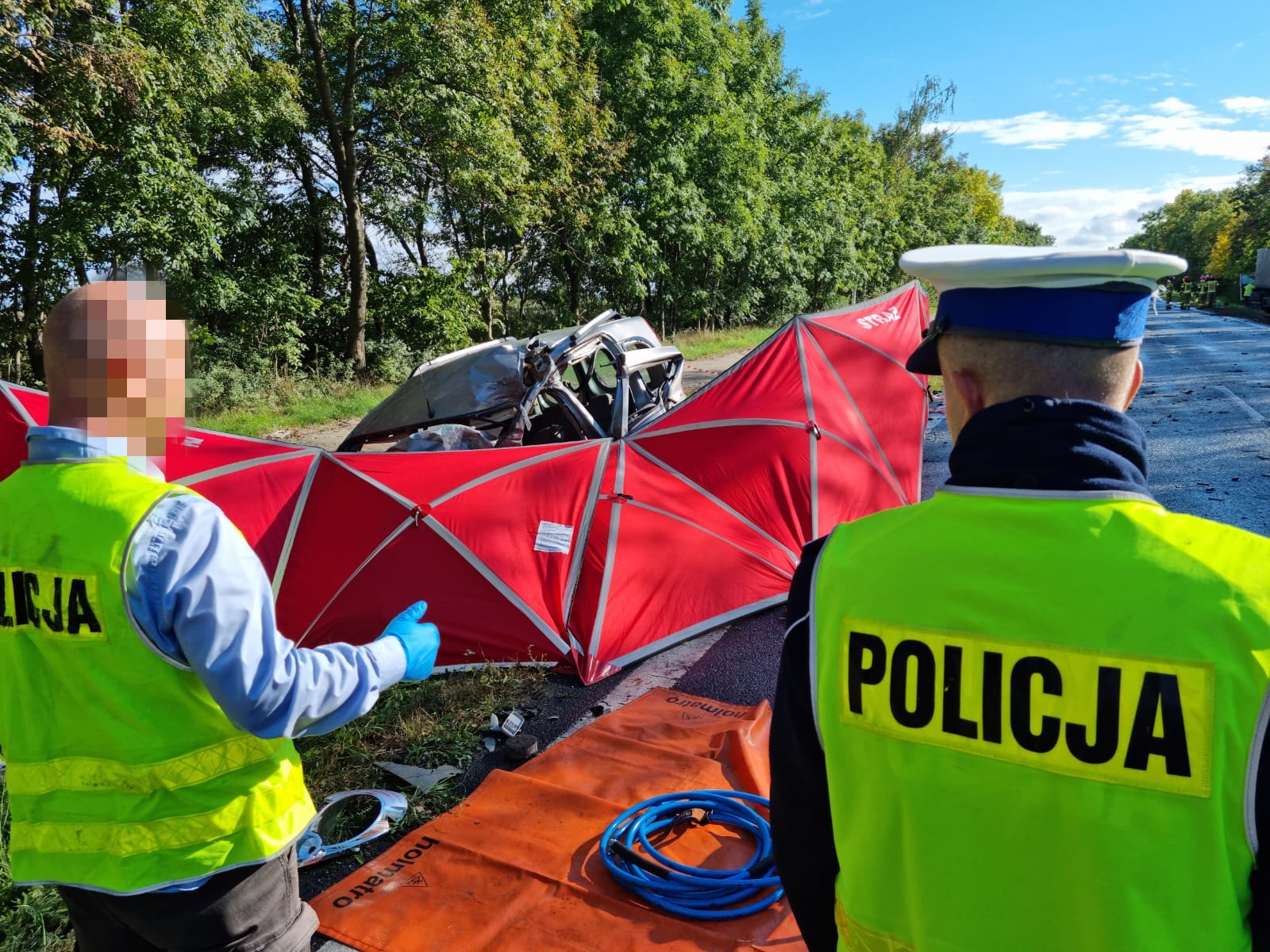 Strażacy na miejscu również musieli przepompować paliwo z uszkodzonego samochodu ciężarowego. Na koniec działań użyto ponownie specjalistycznego sprzętu hydraulicznego w celu wydobycia ciała – informuje portal wlkp112.pl Szymon Kurpisz z leszczyńskiej straży pożarnej